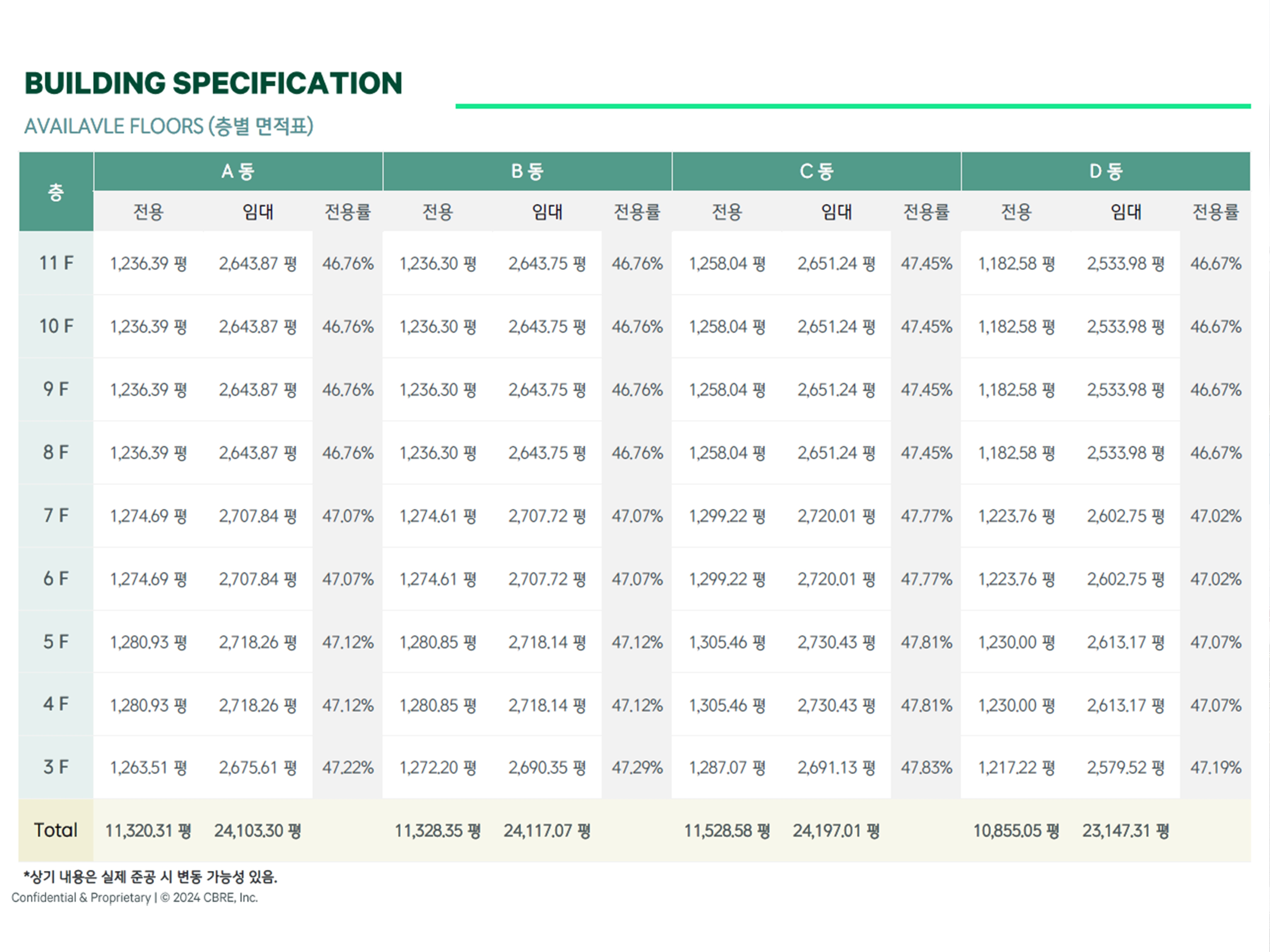 원그로브는 총4개동으로 건설되었으며 강남사무실임대 기업들의 대안으로 역할을 할 마곡오피스 용도는 지상3층에11층까지 공급되며 전용약1264평부터 약1305평까지 층별 전용면적을 가지고 있습니다. 현재 층별로 사용할 대기업들 유치뿐만 아니라 면적분할을 필요로 하는 백평대 사무실임대 필요기업들도 협의를 통해 입주가 가능합니다.