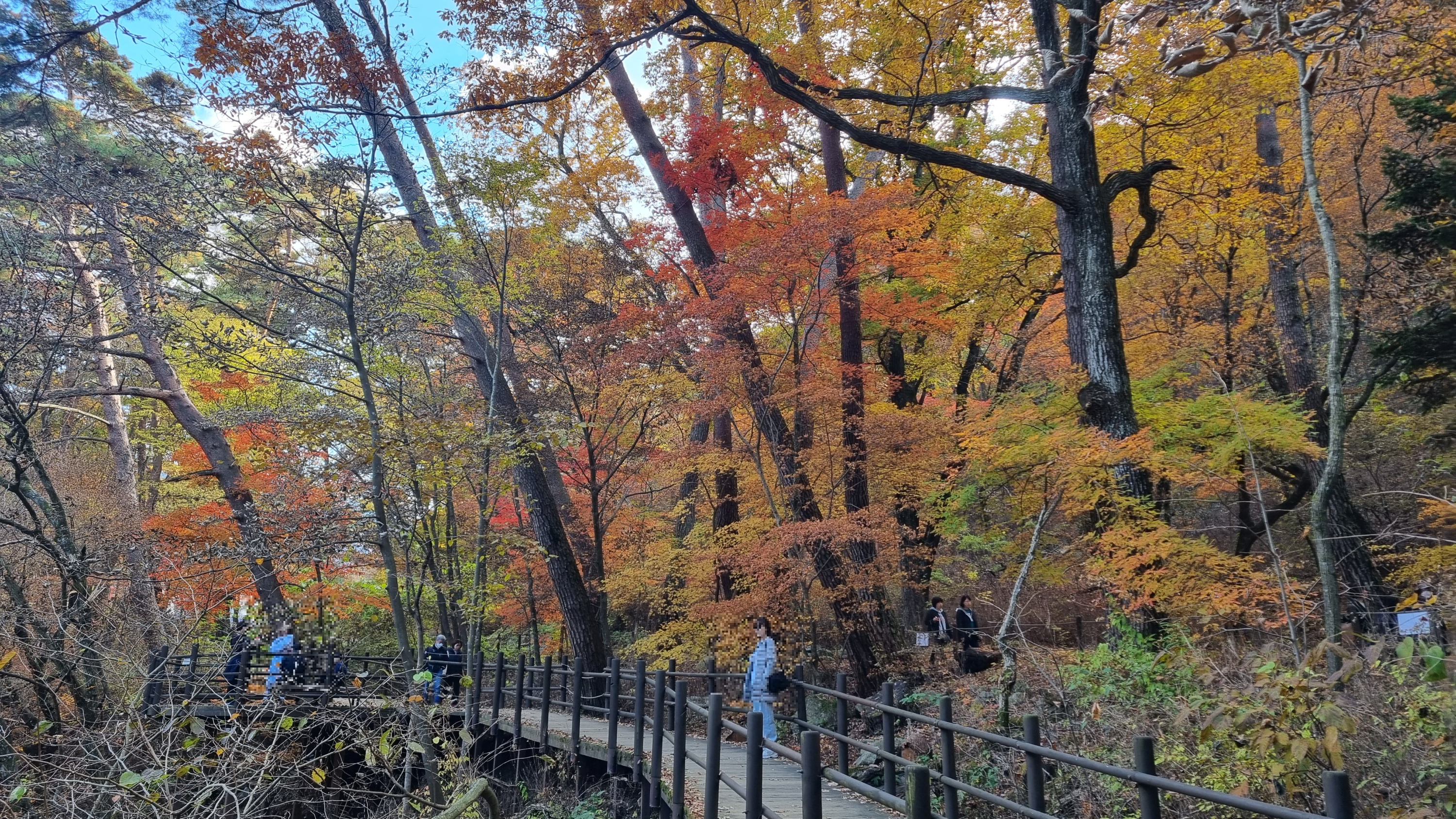 길을 따라 단풍나무, 전나무, 소나무가 어우러져 색감의 향연을 이루고, 길가에는 구룡계곡의 물소리가 가을의 정취를 더해줍니다. 천천히 걸으며 단풍잎이 바람에 흩날리는 소리를 들어보세요. 마음이 차분해지고, 계절이 주는 여유를 온전히 느낄 수 있을 거예요.
