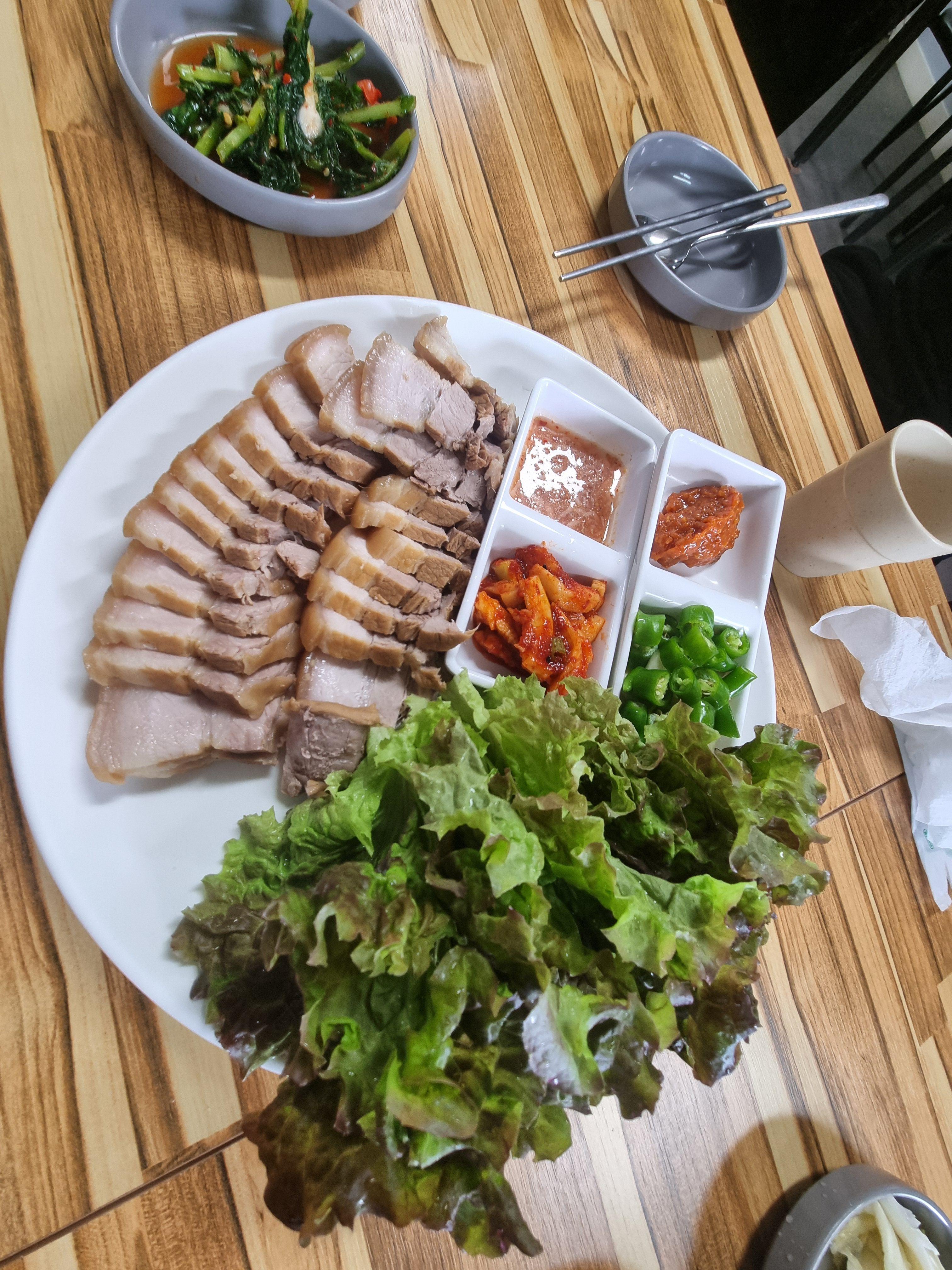 편육도 나왔습니다. 앞다리살로 만든 편육으로 보이는데 집에서는 아무리해도 이처럼 쫀득하고 야들하게 잘 안되는데 이곳 청정막국수 편육도 맛있네요. 양이 많다고 볼 수는 없지만 상추 한쌈이면 끝이죠.
