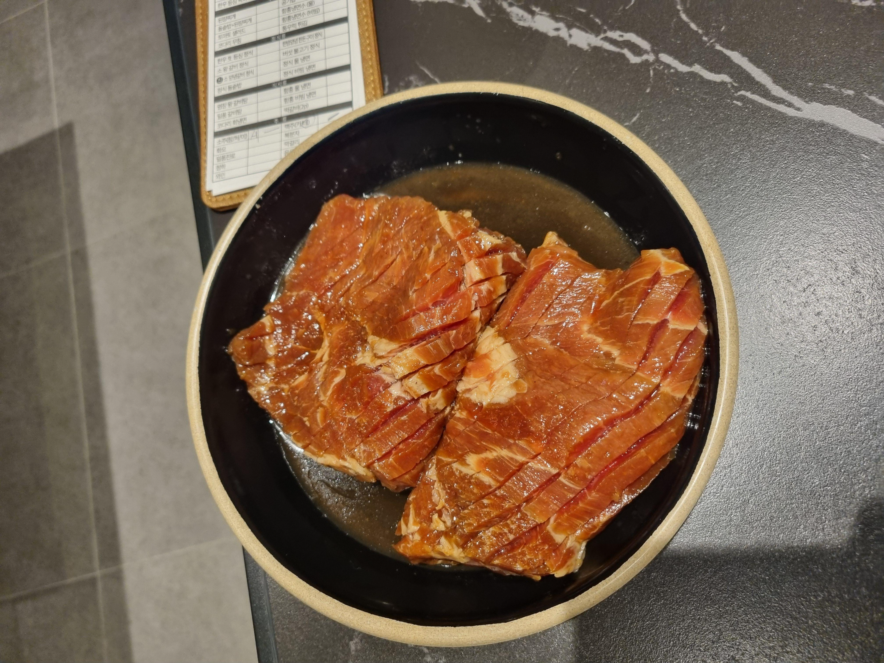 돼지갈비만 먹어봤지만 소고기는 더 맛있을듯 하네요. 갔을때 오픈기념으로 입구에서 포장된 가격에 세일 진행중이니 구입해도 좋을듯 하더라구요.