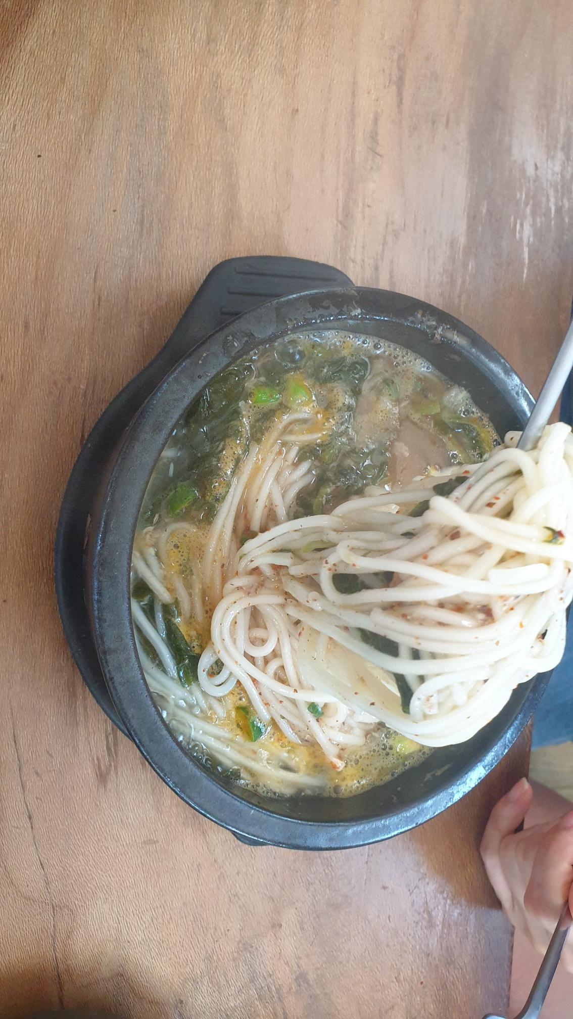 금새 팔팔끓는 어탕국수가 나왔습니다. 뚝배기가 뜨거워서 조심해야 겠네요라구요. 일단 그릇밖으로 내밀고 있는 국수의 양이 푸짐하겠다 싶었고 시래기가 들어있어서 시원하겠다는 생각도 들었죠. 사실 어탕을 한번 먹어본적이 있지만 그곳은 추어탕에 가까운 맛이었는데 인월맛집 으로 소문난 두꺼비집 어탕국수의 맛이 궁금했는데 상상했던것보다 더 깔끔맛이었습니다.