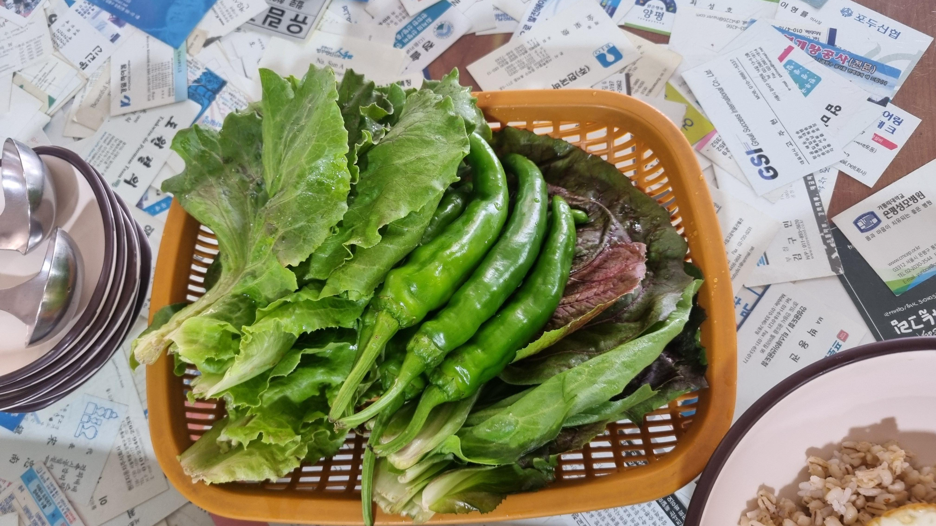 직접 재배한 신선하고 싱싱한 야채에 보리밥을 싸먹으면 별미입니다. 함께 나온 풋고추를 시골된장에 푹 찍어 한입 배어먹으면 그이상 맛이 있을 수없을듯 합니다.