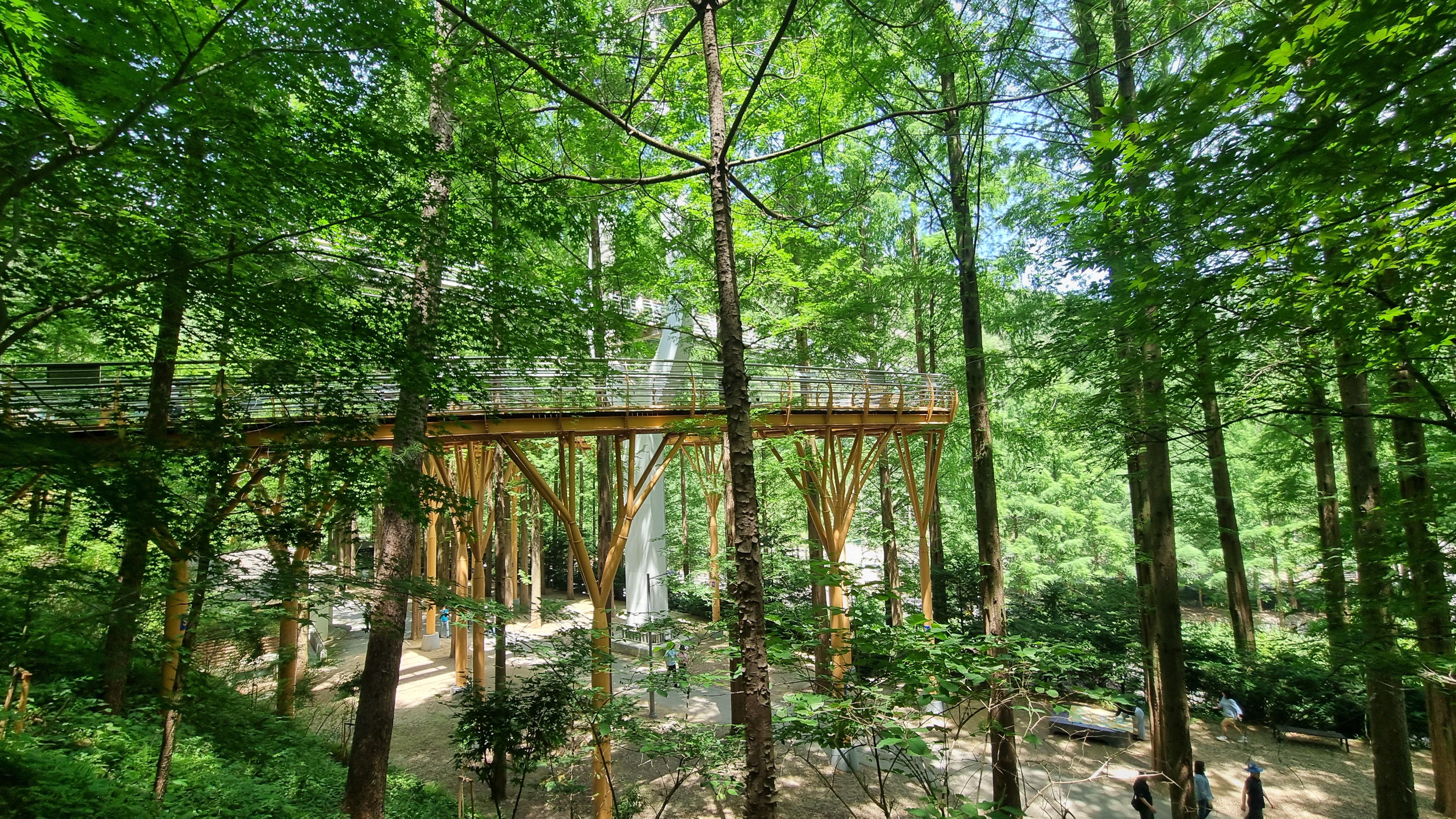 장태산자연휴양림은 메타쉐콰이어 숲과 숲 위 데크길인 스카이워크가 대표적인 볼거리입니다.