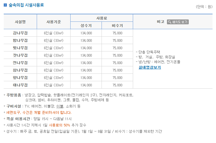 | 숲속의집 6인실 | 6명 | 134,000원 |