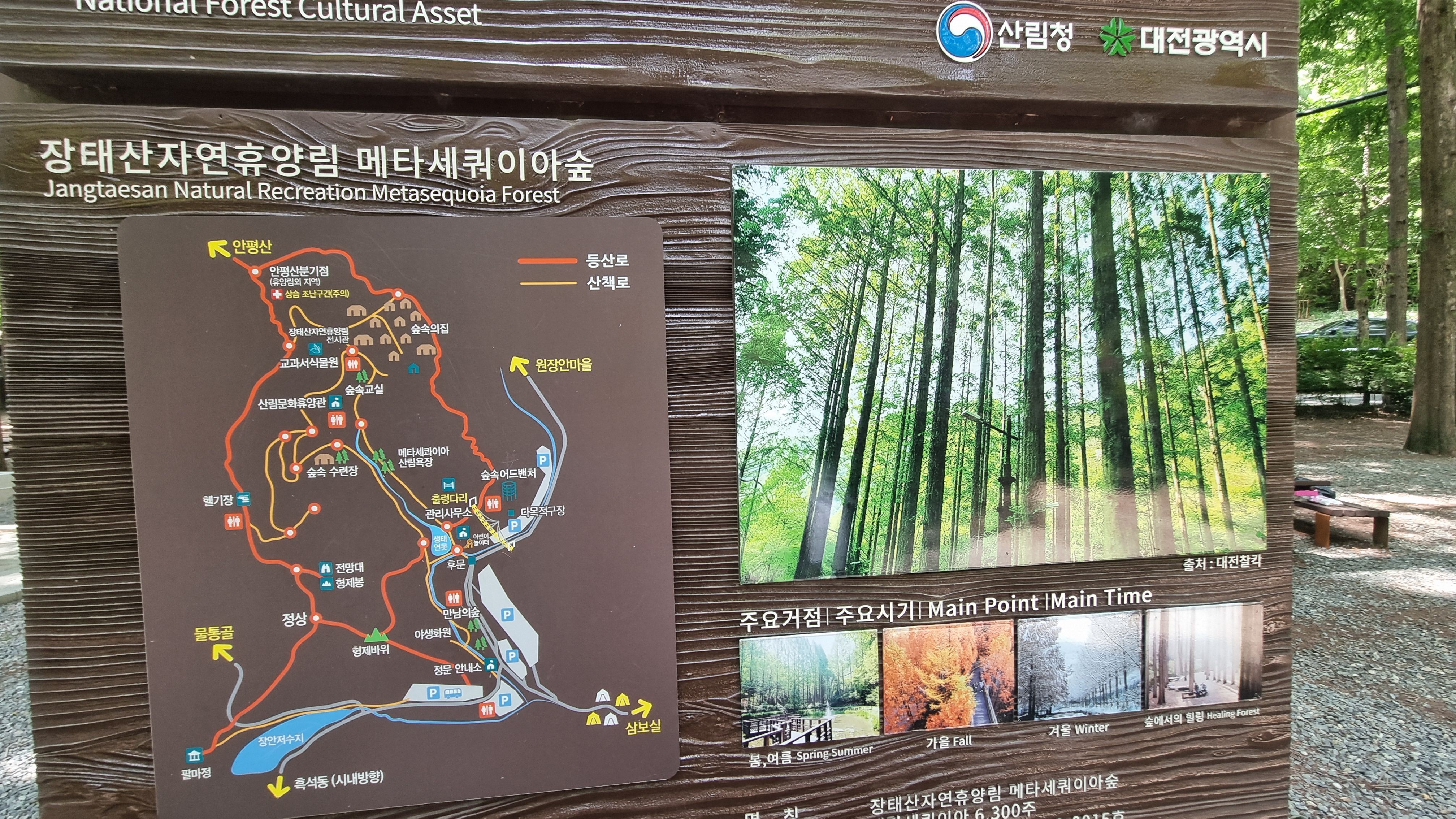 대전장태산자연휴양림은 메타쉐콰이어 숲길과 스카이워크로 유명한 대전 대표 자연휴양지입니다.
