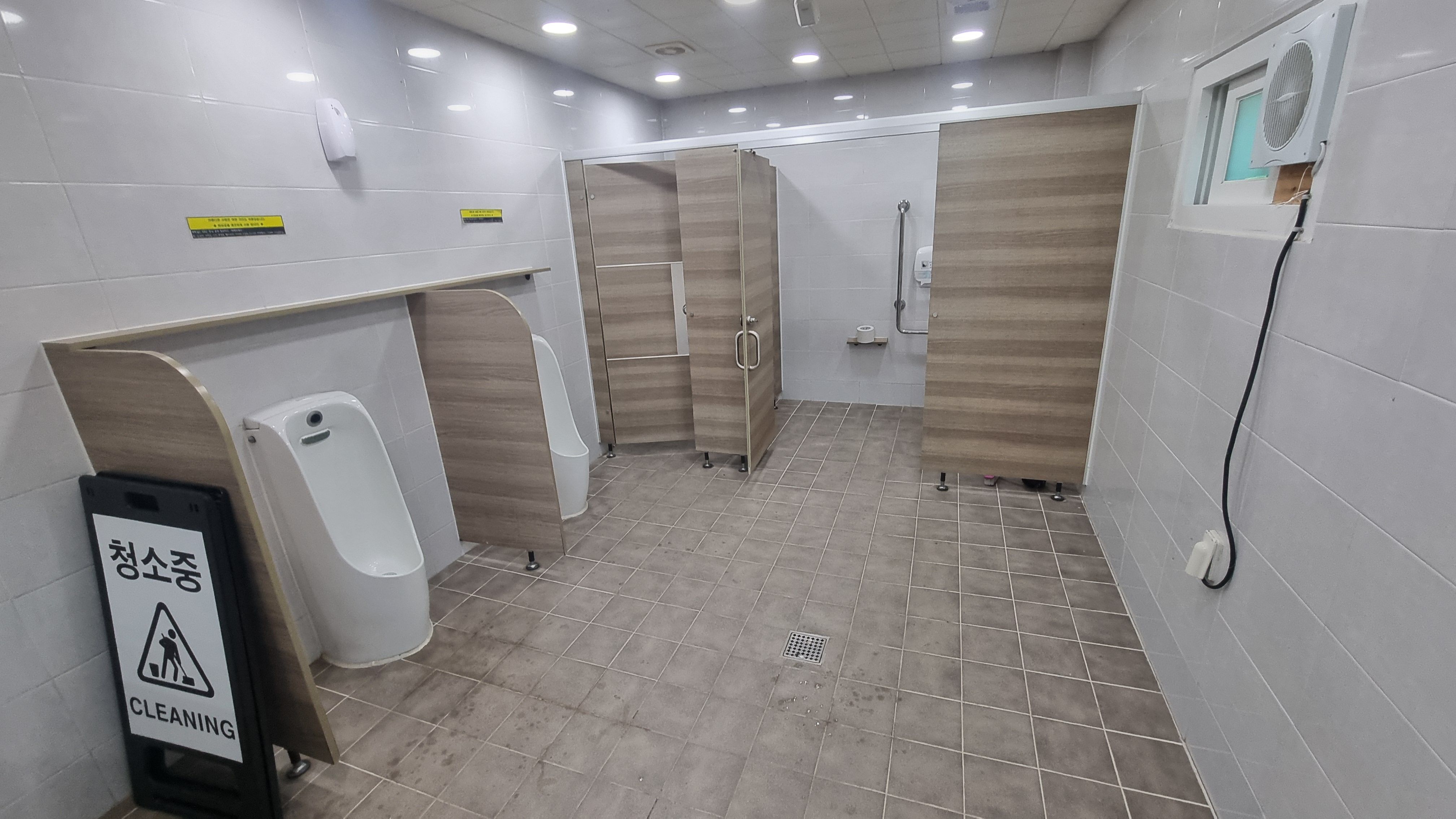 화장실과 개수대 샤워장이 한건물로 되어 있고 c구역옆에 자리하고 있어서