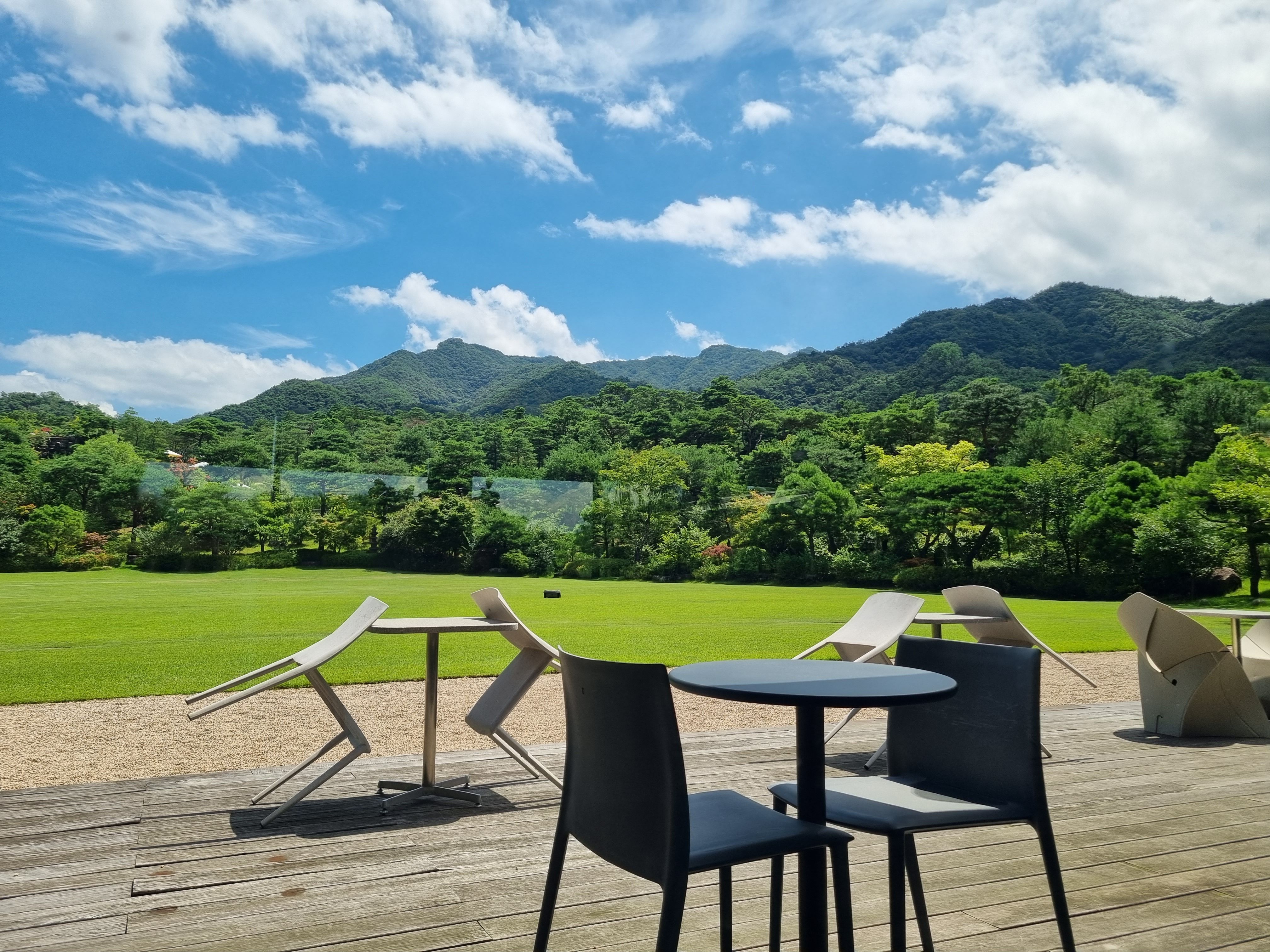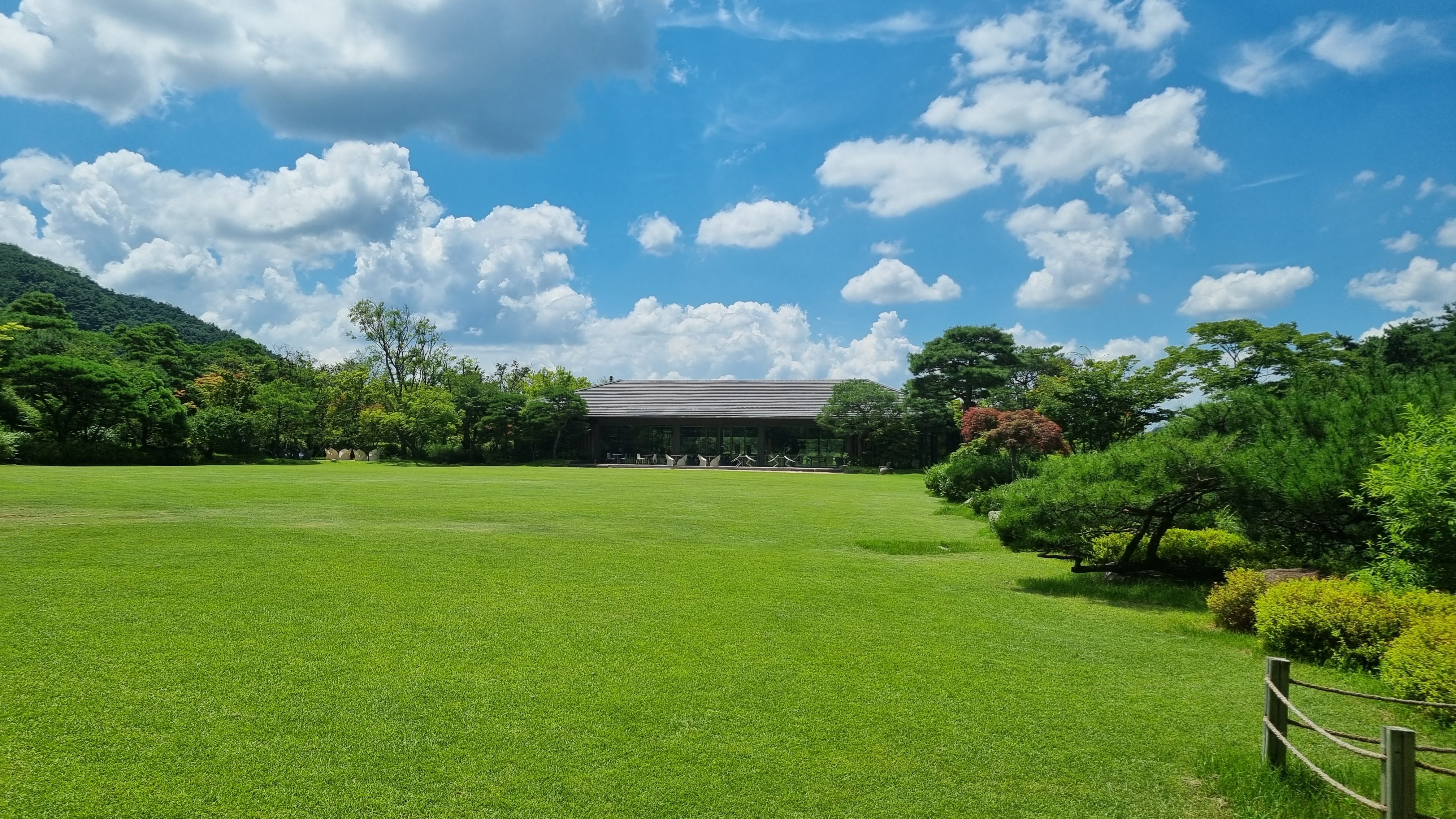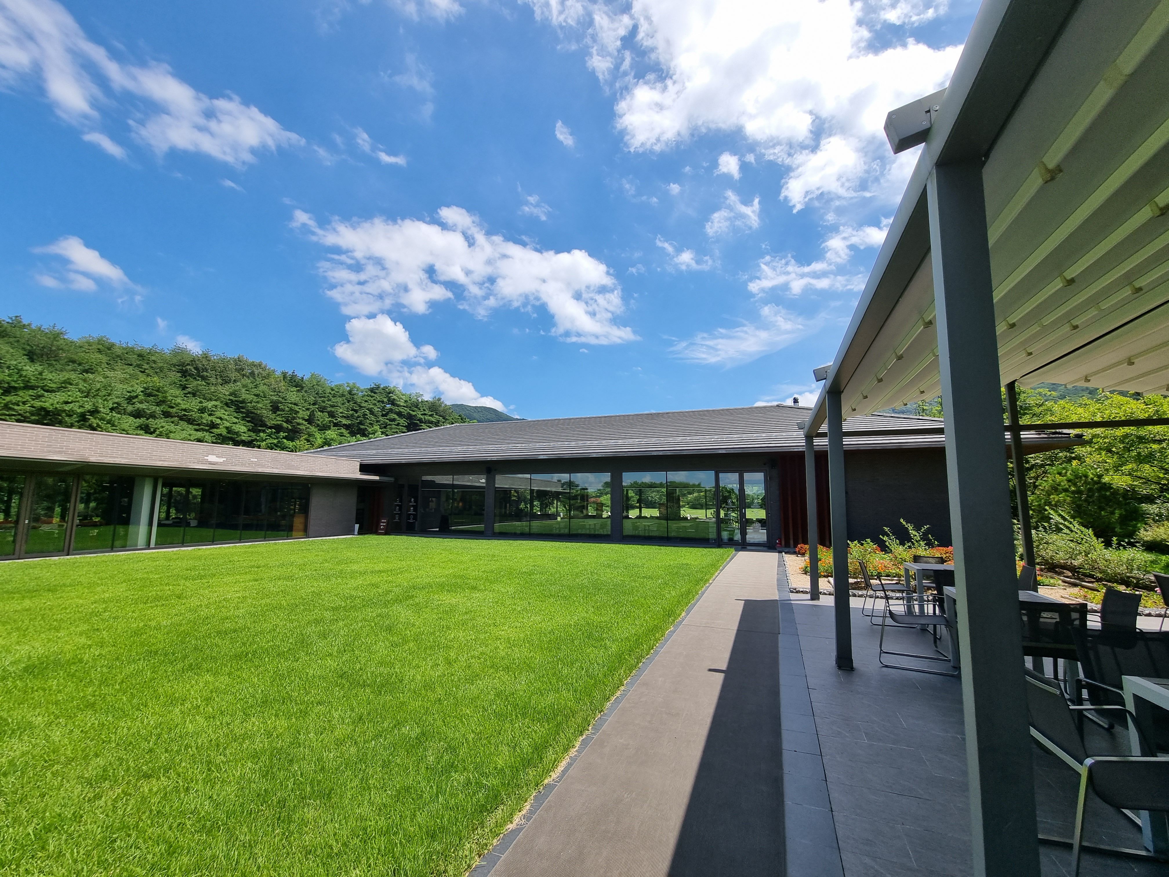 감탄 그자체죠.너른잔디밭과 지리산 자락과 푸른하늘, 너무좋다라고 할수밖에 없더군요.