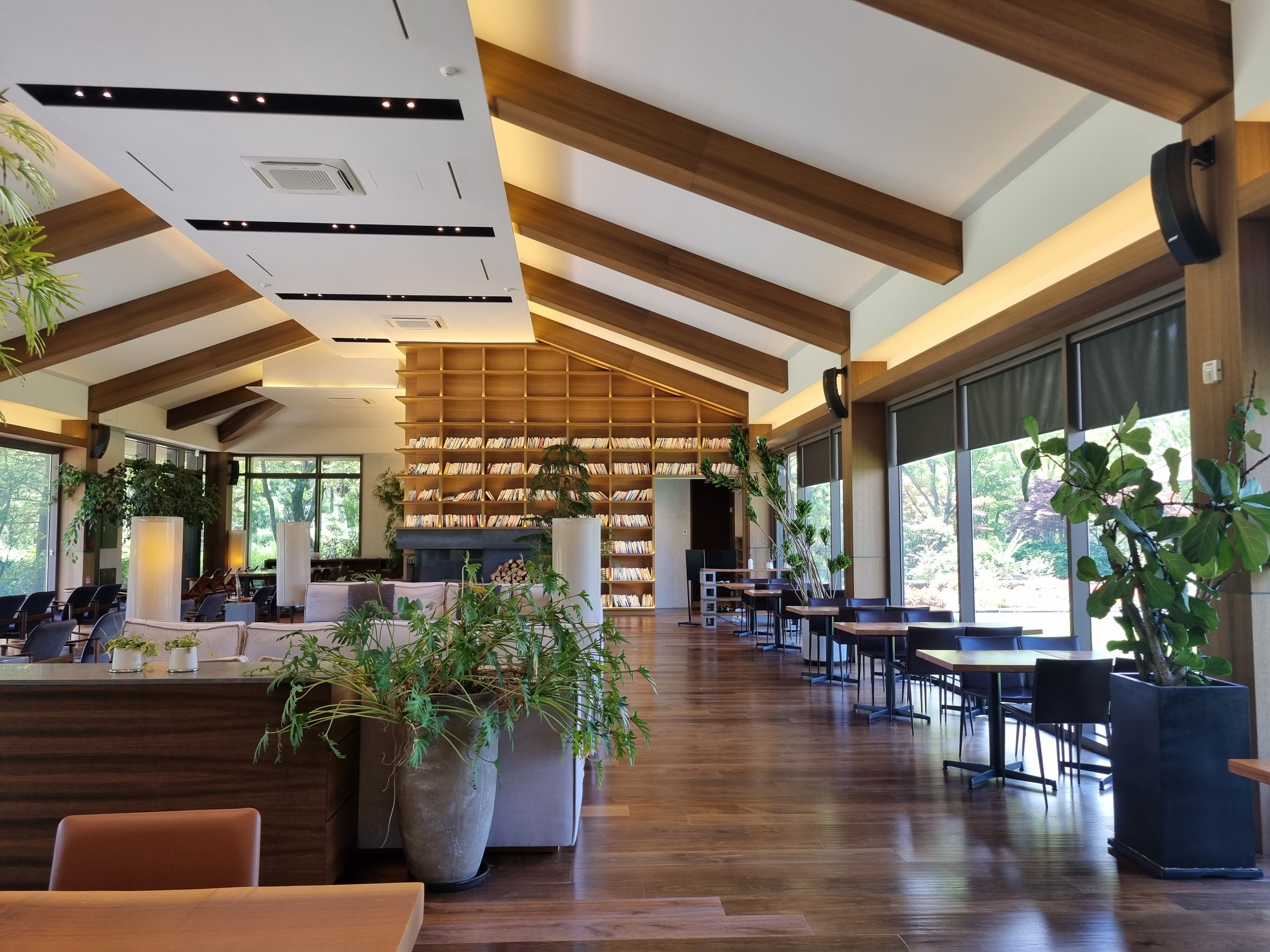 이곳은 뒷마당이에요. 잘가꿔진 잔디밭옆으로 야외카페도있고 건물은 역 기역자 형태로 왼쪽이 카페및 주문장소 정면이 북카페형태의 건물입니다. 여기는 어린 자녀를 둔 분즐께는 노키존이어서 아쉅겠지만 숲속에서 조용히 책한줄 읽고싶은 장소랍니다.