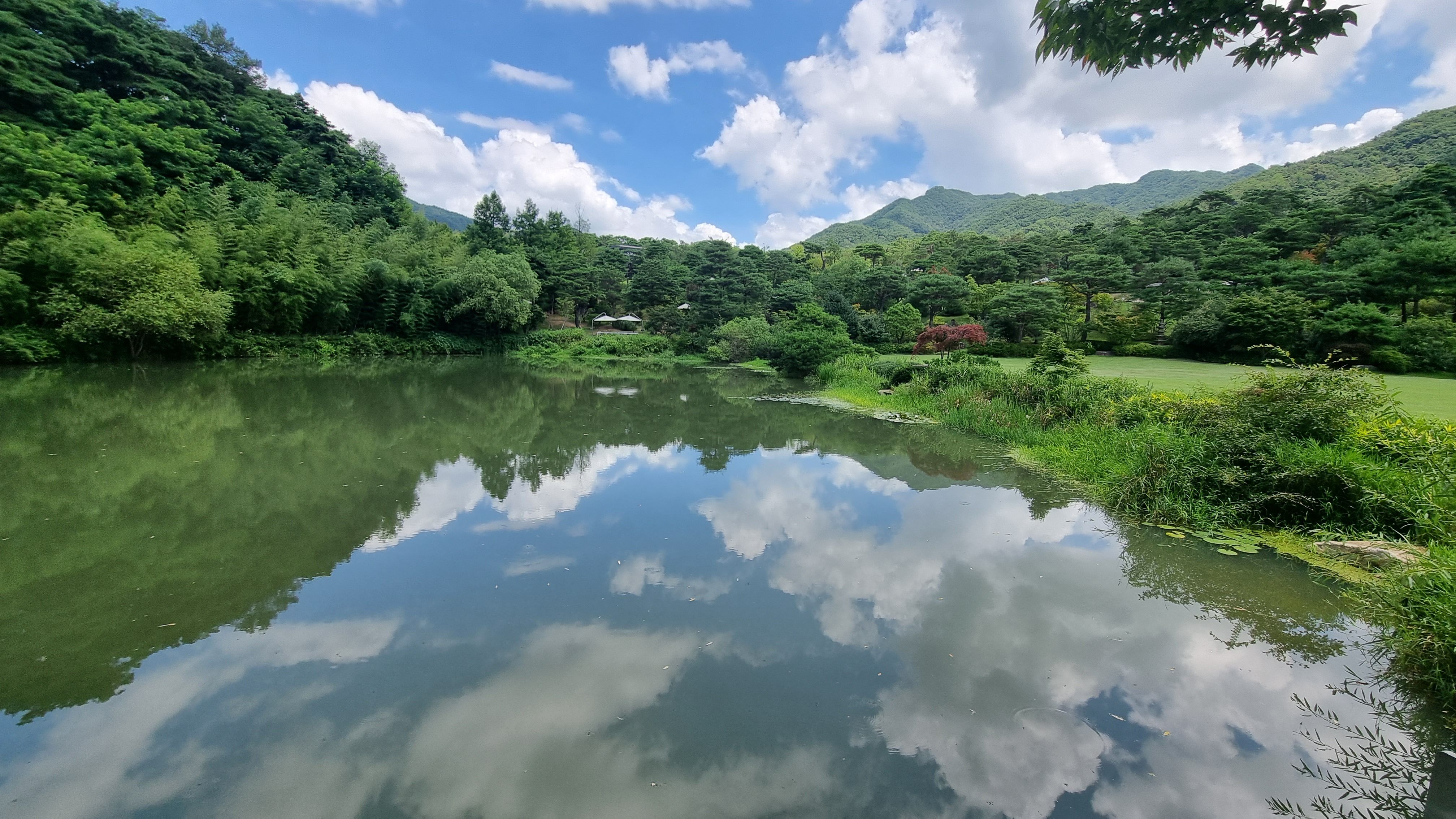 아담원에서 왜이곳을 이구동성 인생포토존으로 꼽는지 알겠습니다. 연못에 비친 하늘과 산이 환상적이라는 표현밖에 없네요. 사진을 안남길수가 없는 풍경이에요.