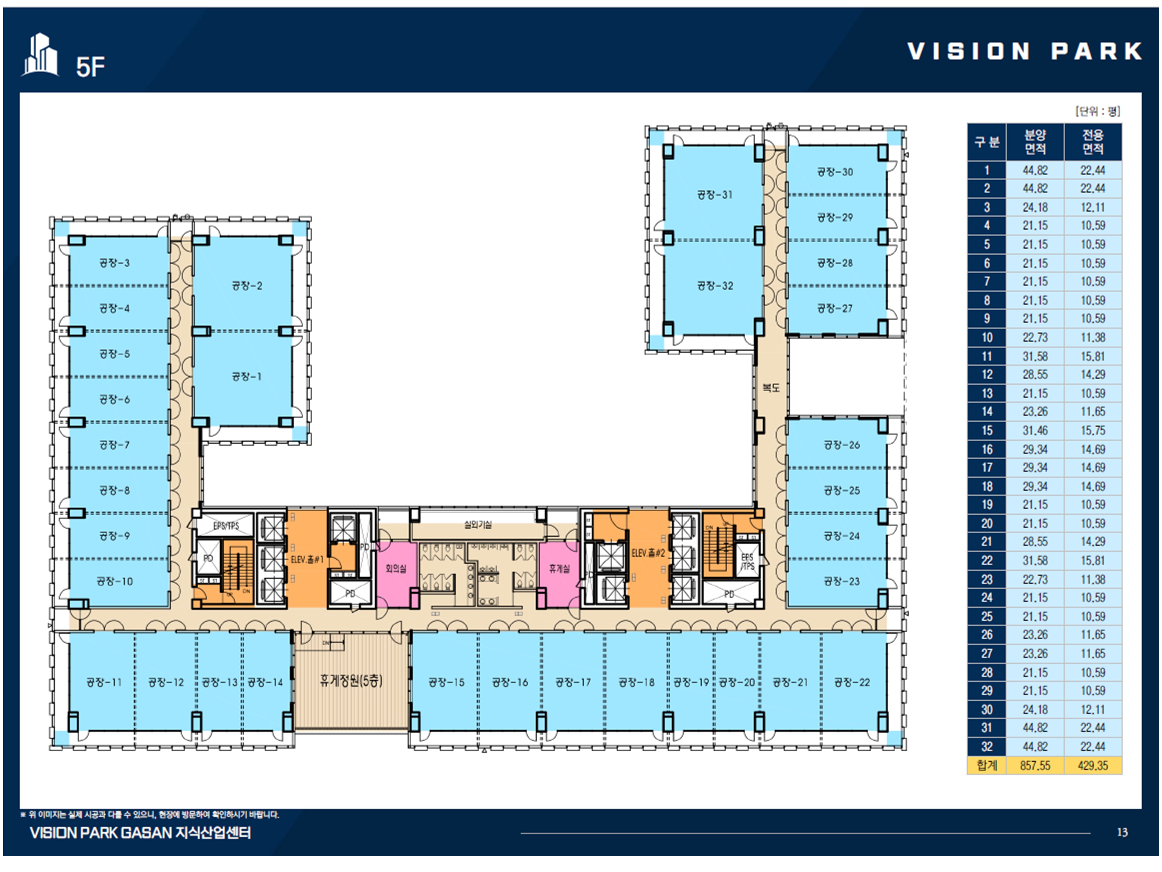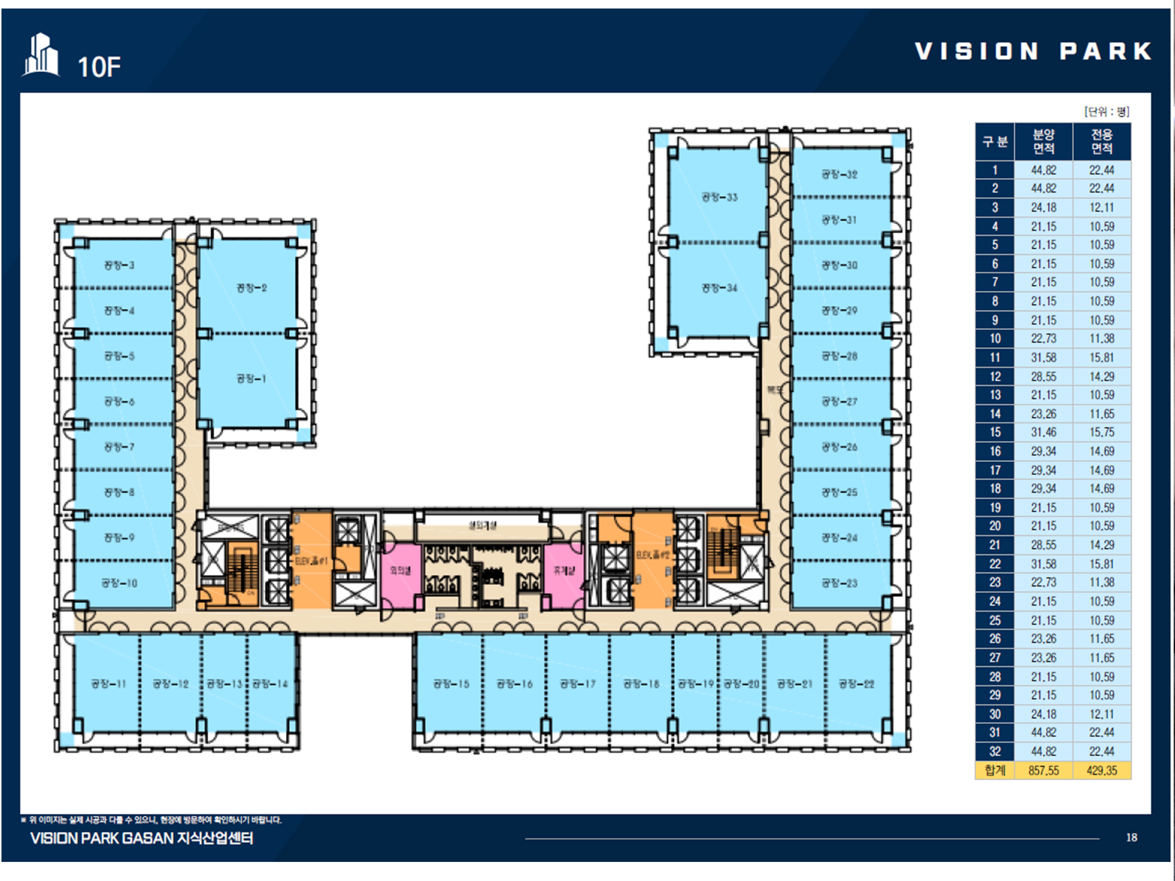 아래는 비젼파크 서울지식산업센터 일부층도면을 보여드립니다.