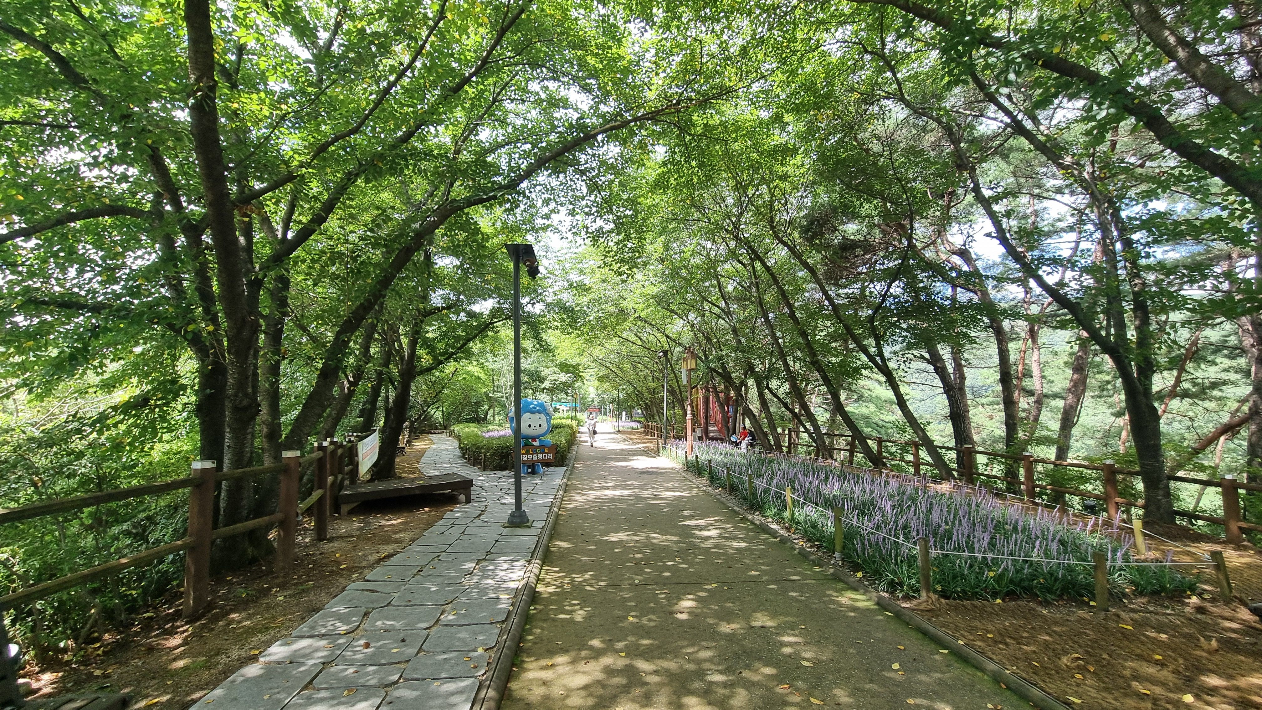 이곳은 천장호 산책로도 유명한데요, 다리를 건너면 호수 주변을 따라 긴 산책로가 이어집니다. 이제 제법 바람도 시원 해졌고 9월여행으로 이곳을 여유있게 가셔서 산책로를 한바퀴 돌아보면 좋겠습니다. 저는 너무 더워서 다리를 건너오는것만으로 만족해야 했습니다.