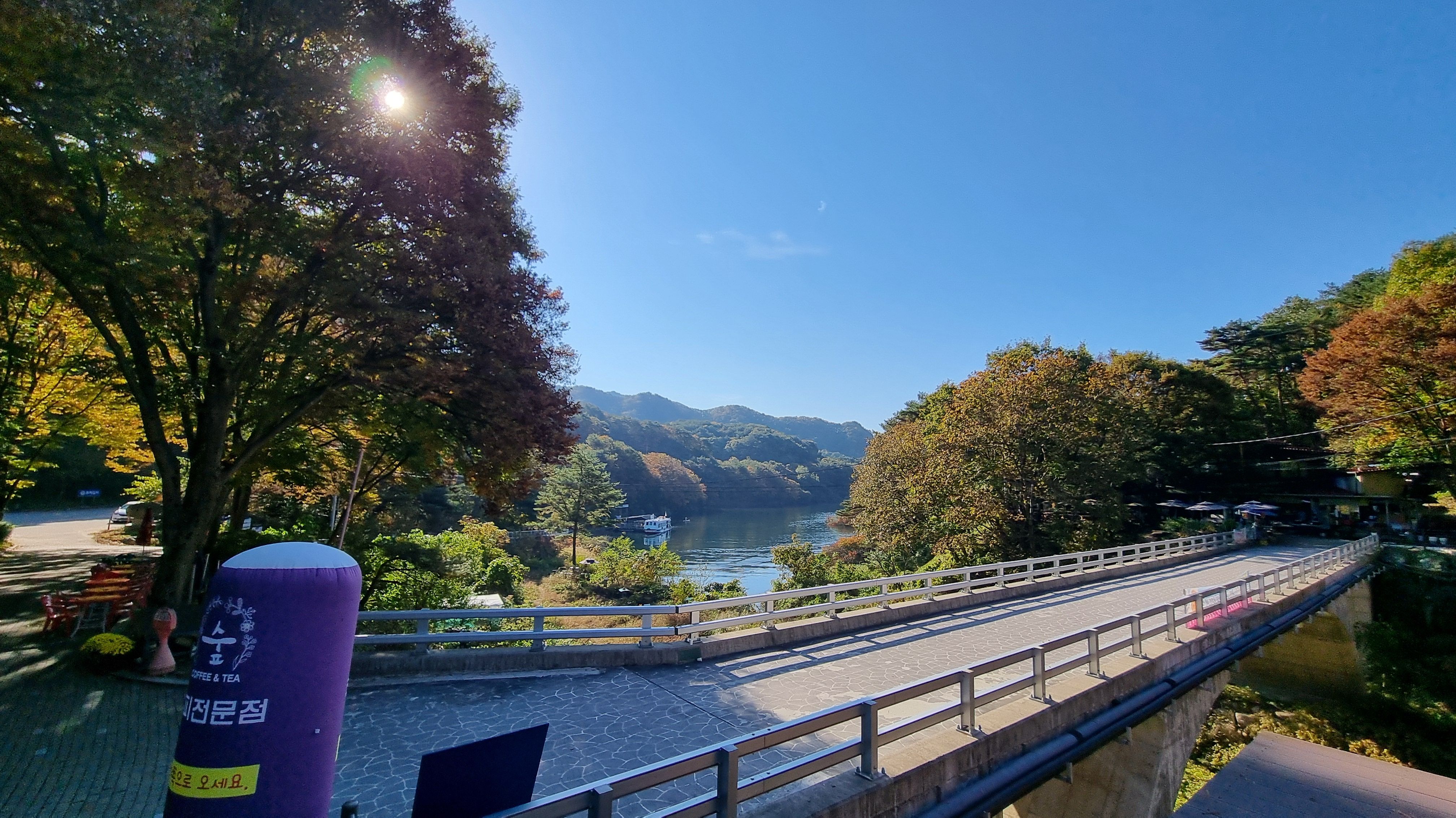 단풍이 물들어 가는 소양호의 모습입니다. 사진왼쪽으로 선착장이 있는데요, 저는 이번에 화천숲속자연휴양림 캠핑을 겸해서 차로 다녀왔답니다.