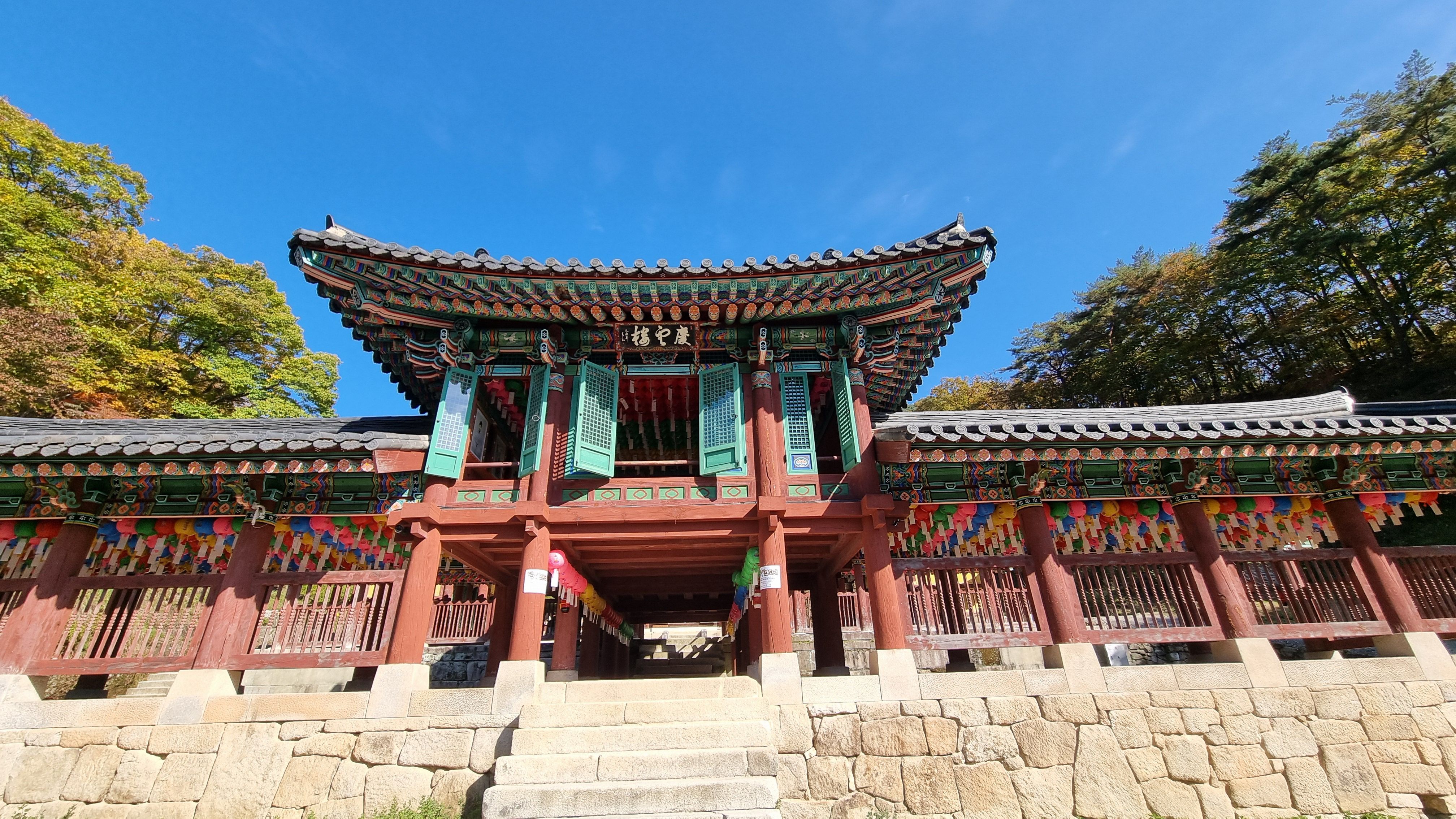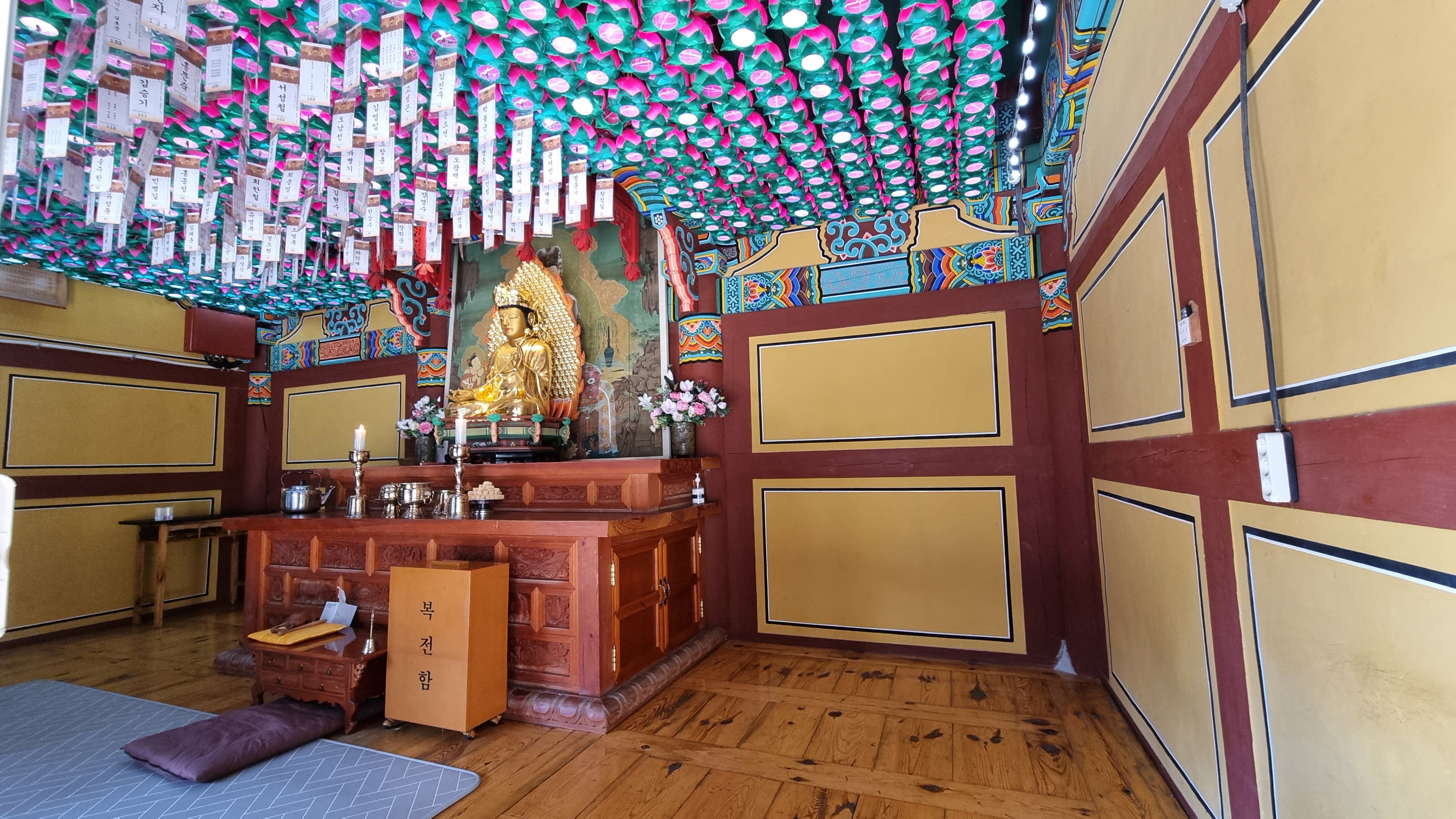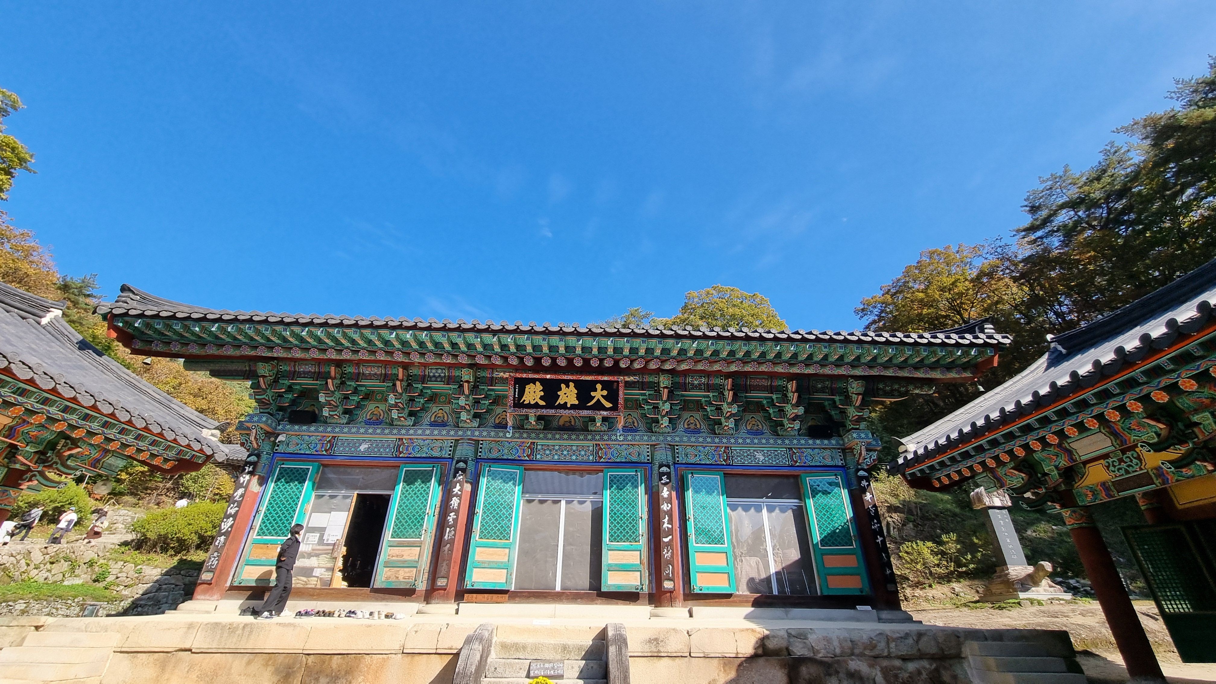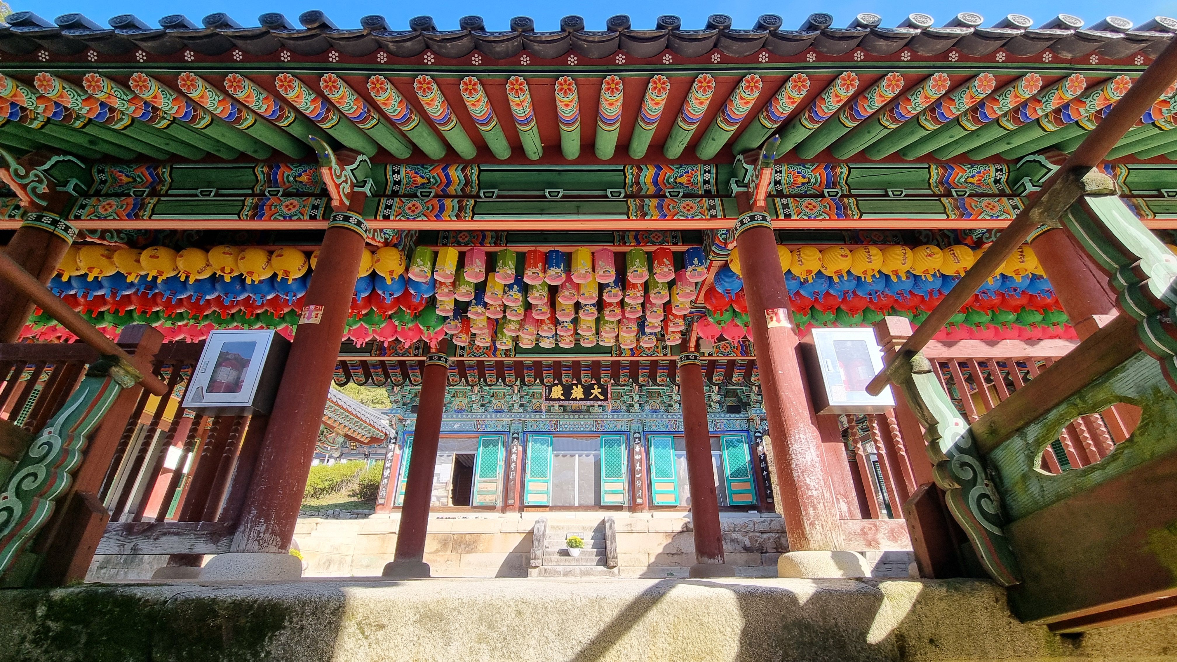 회전문을 지나 계단을 오르니 정면에 대웅전 죄우측에 나한전과 관음전이 한눈에 들어옵니다.