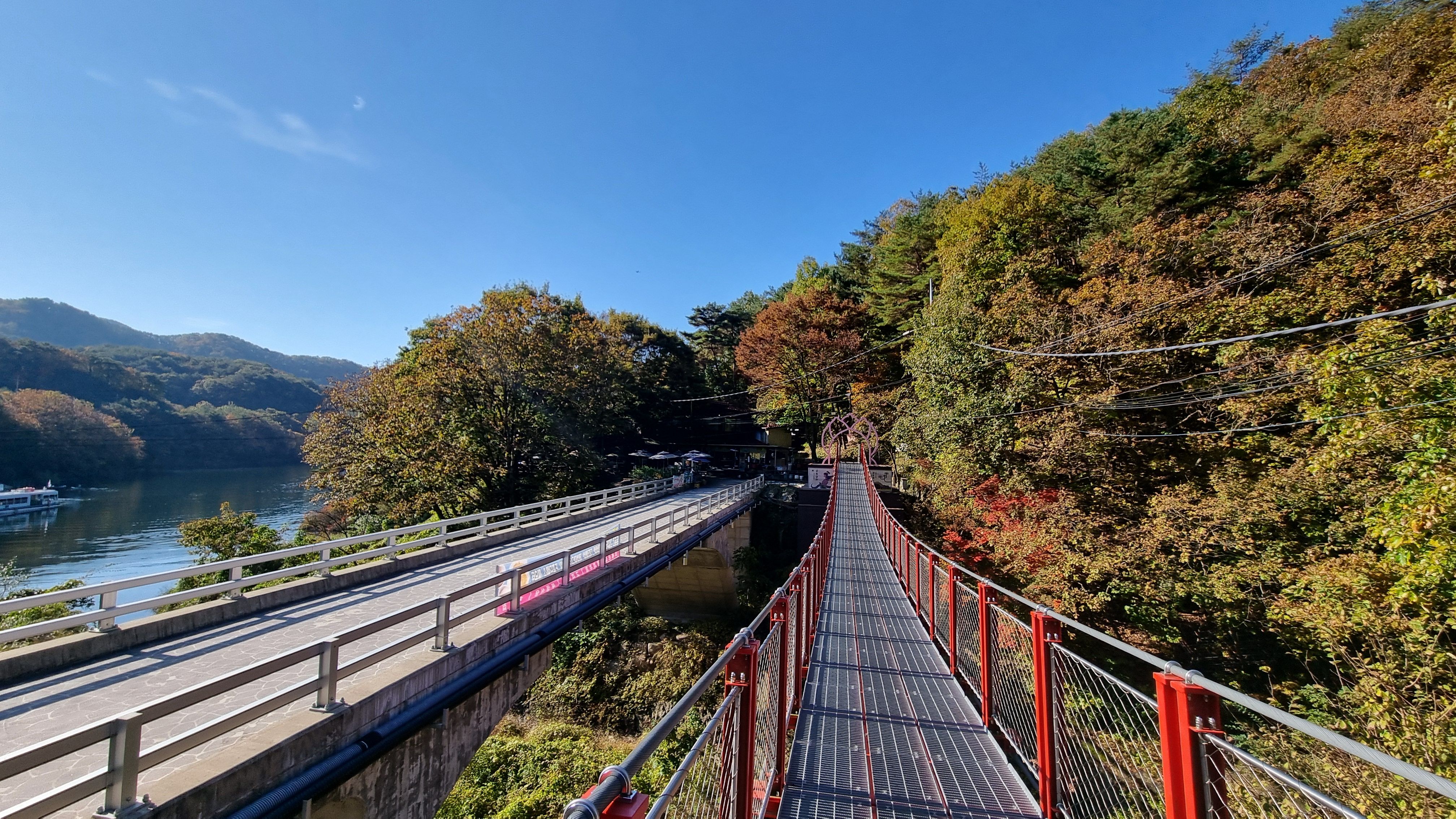 소양호를 가로지르는 출렁다리도 있어서 사진 찍으면 예쁘게 나옵니다. 바닥이 보여서 고소공포증이 있는분들은 조금 무서율듯 합니다.
