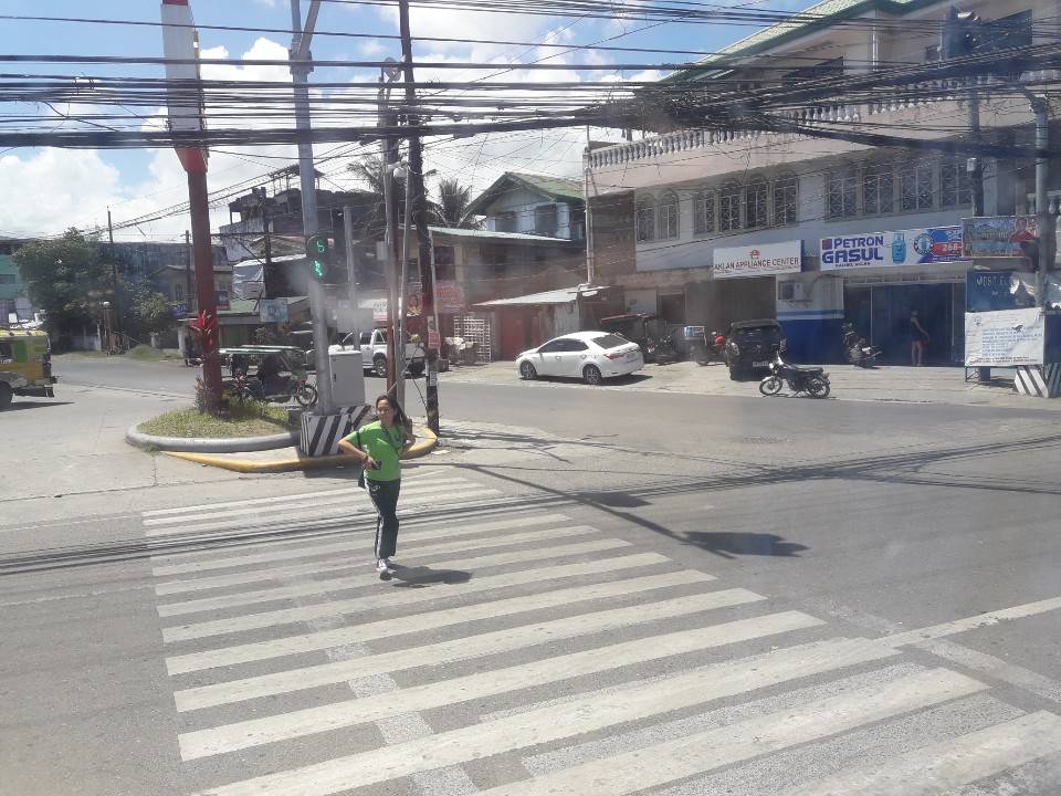 아름다우 필리핀여성이 횡단보도를 건너는데