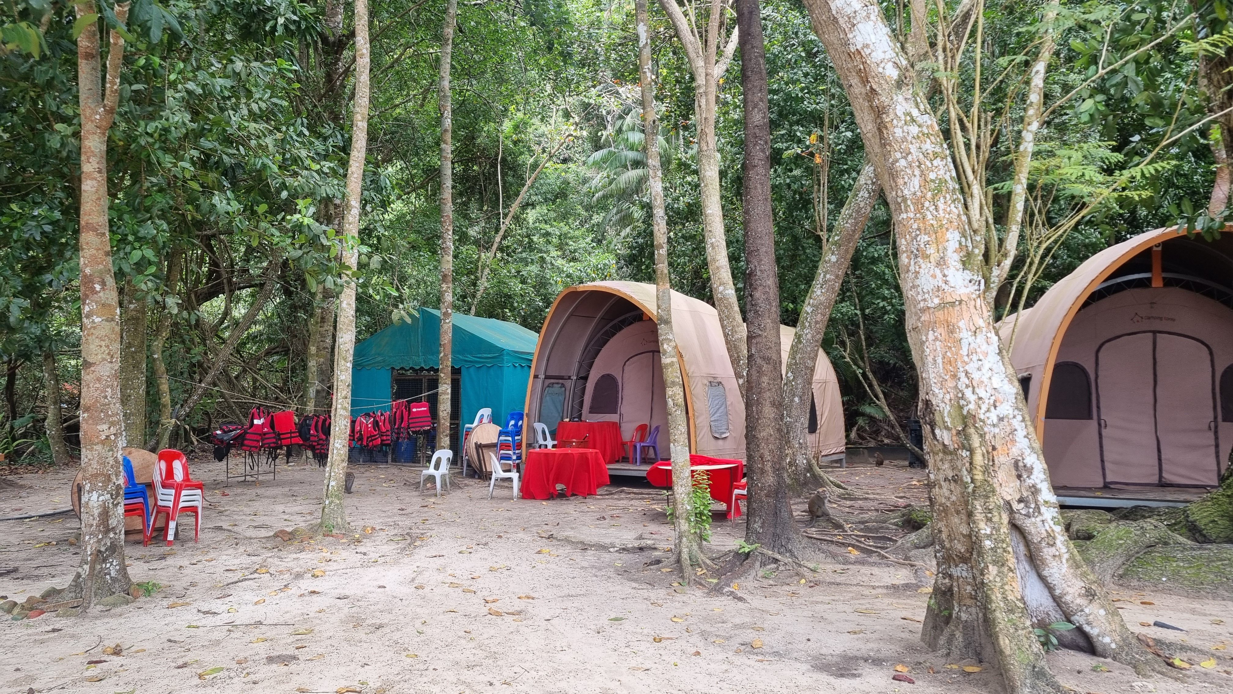 해변 뒷편으로 구명조끼와 스노클링장비를 무료로 대여해 주는데 코타키나발루호핑투어 일정에 포함된 섬인걸 보니 이곳이 그닥 인기는 없는곳인듯 하네요. 빵가루를 던지면 고기들이 몰려들긴 하지만 그냥 바다속에는 물고기도 별로 보이지 않고 깊이도 너무 낮아서 사실 수영도 좀 멀리 나가야하는 상황이라 이곳 방문목적이 씨워킹 과 패러세일링 이었던거 같네요.