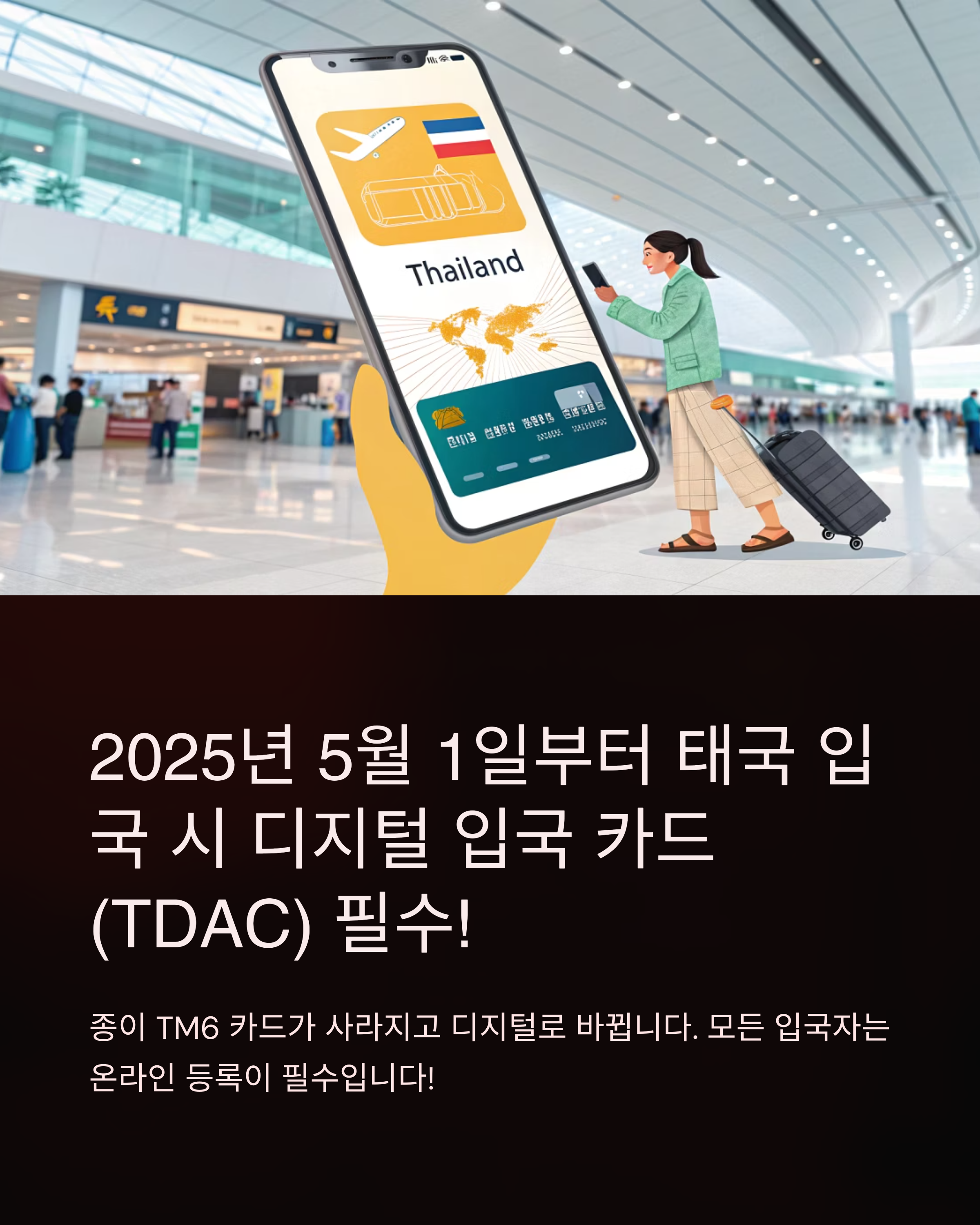여행을 계획하면서 가장 먼저 확인해야 하는 건 바로 입국 절차입니다. 2025년 5월 1일부터 태국은 기존의 종이 TM6 카드를 완전히 폐지하고 디지털 입국 카드인 TDAC 시스템을 전면 도입했습니다.