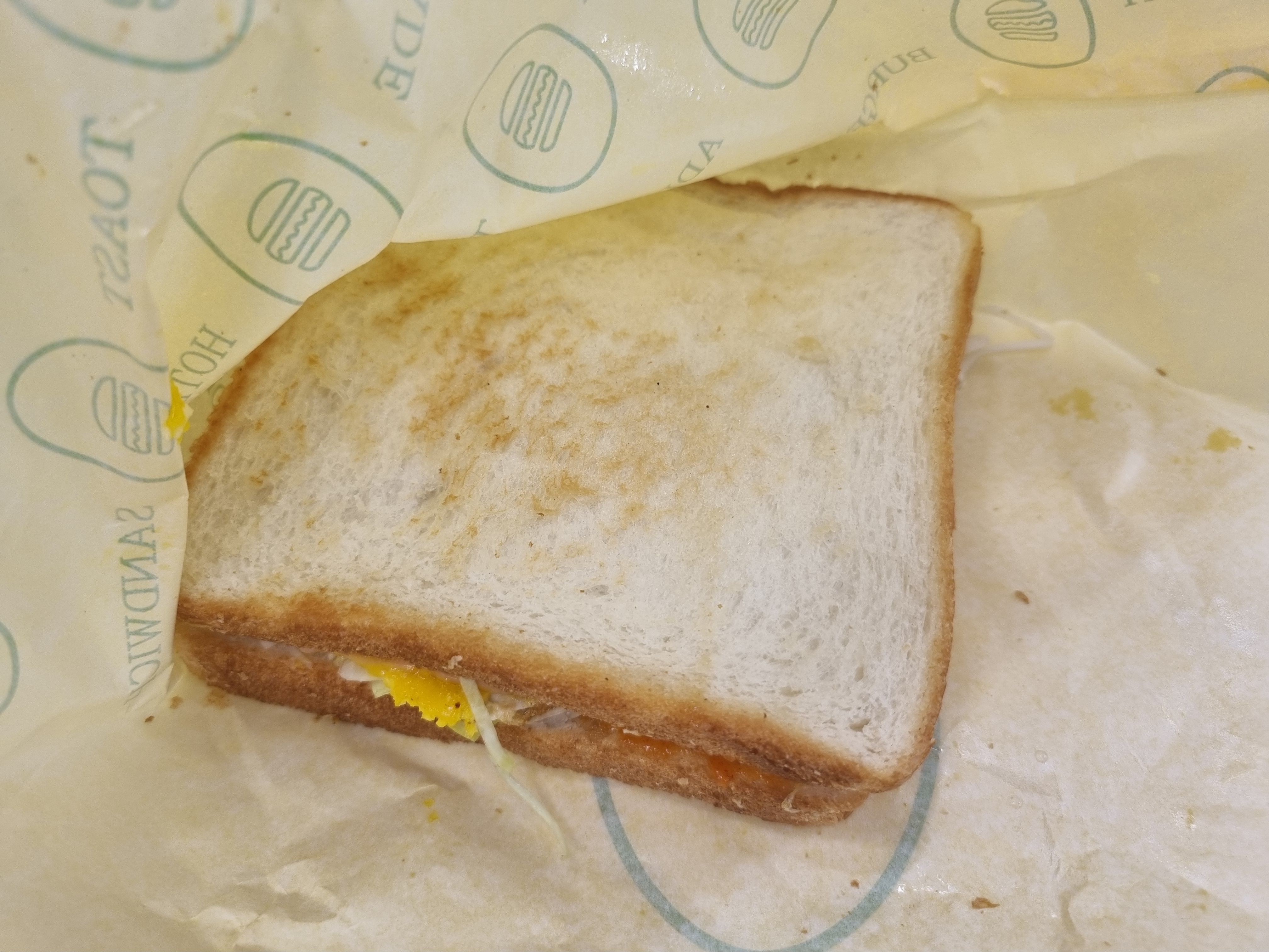 토스타토스트는 세트메뉴가 있어서 토스트+커피로 주문하면 좋더라구요. 외관부터 도톰하고 속재료가 풍부해요. 식빵은 겉이 바삭하게 구워졌고, 속은 부드럽고 촉촉했어요.