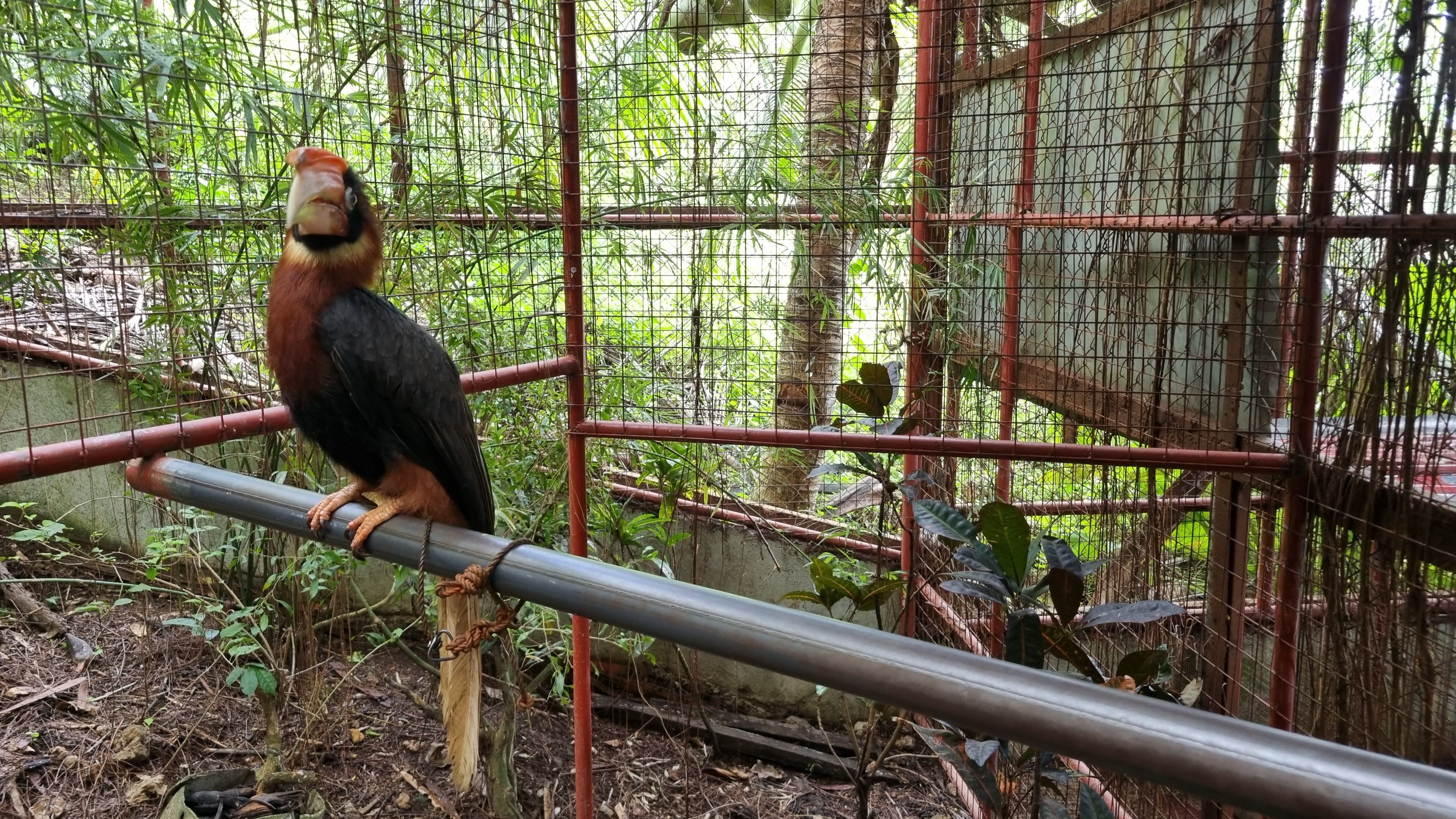 이름은 모르지만 앵무새로 보여요. 말을 할 것으로 기대했지만 말을 하지는 못하더군요.