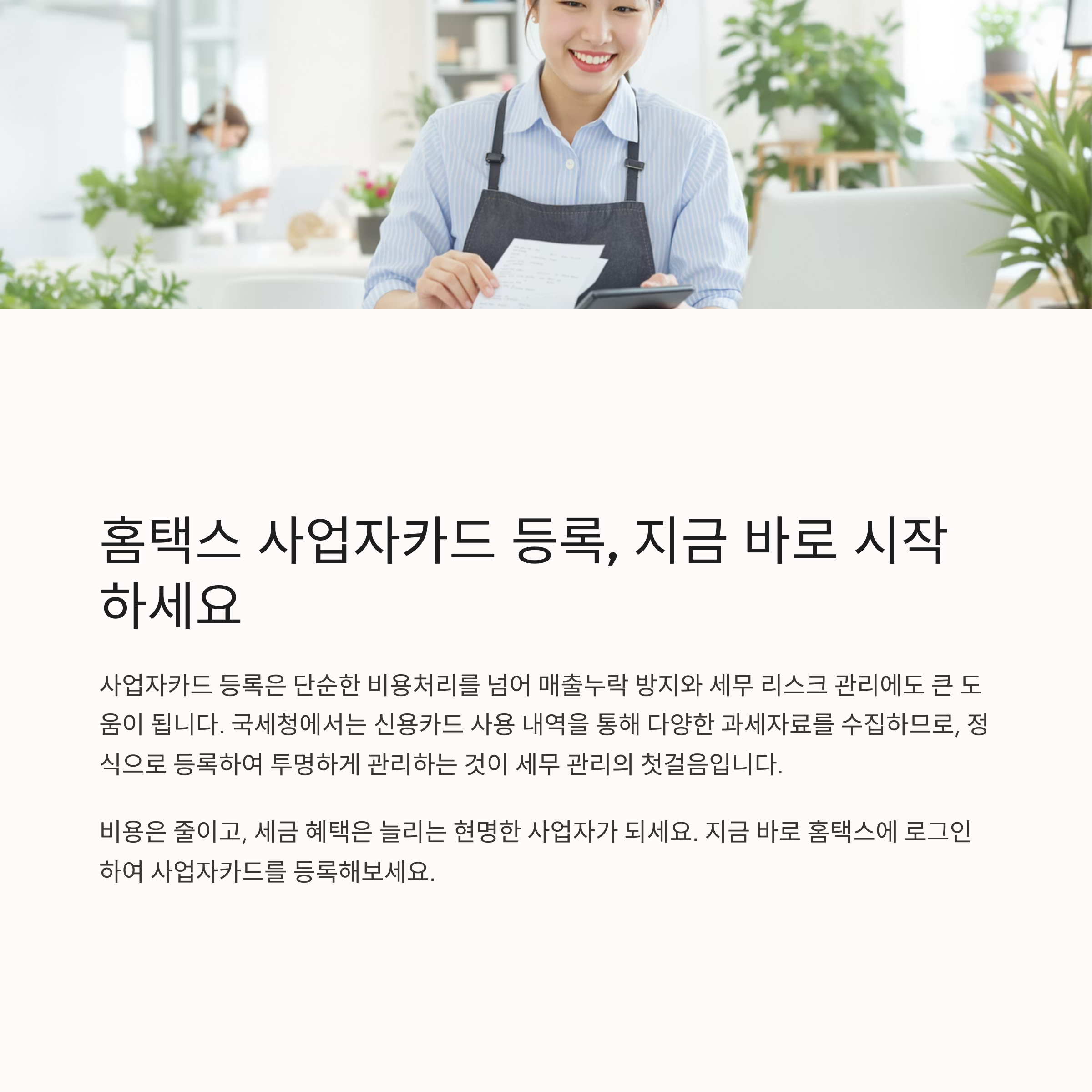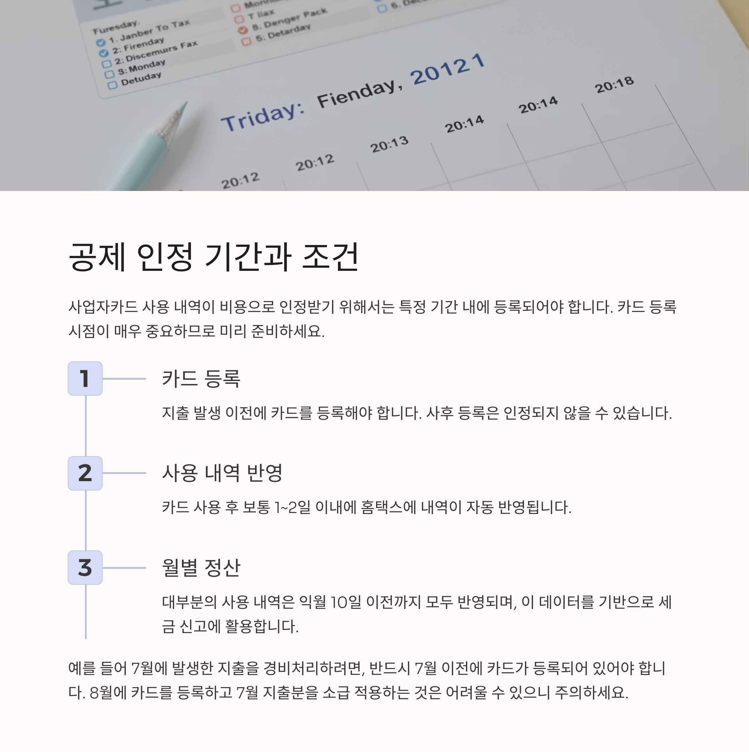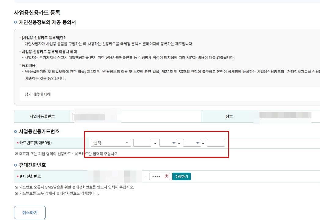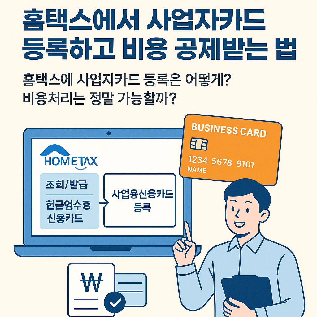 사업 운영 중 카드로 결제한 비용을 경비로 처리하려면, 반드시 국세청 홈택스에 사업자카드를 등록해야 합니다.