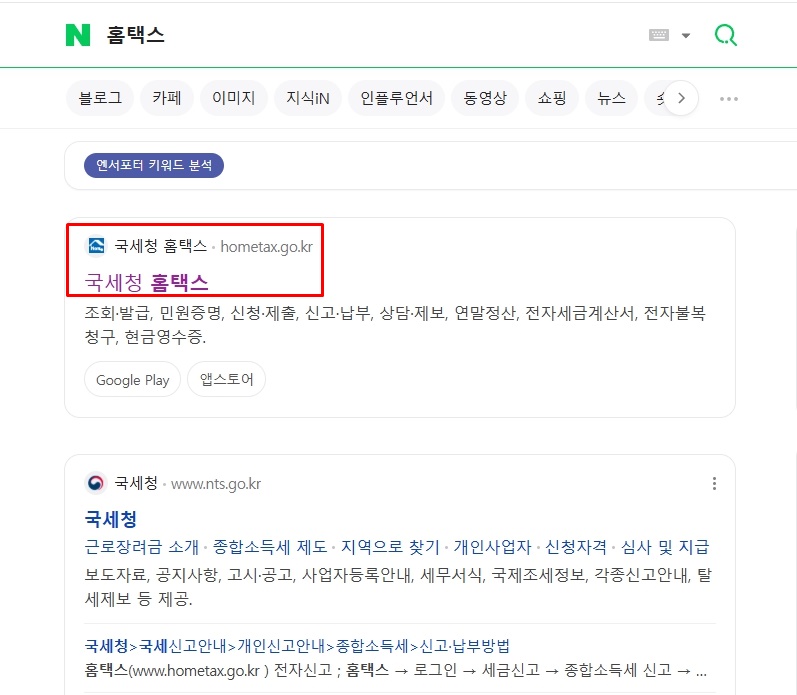 국세청 홈택스에 로그인한 뒤, 메인 화면에서