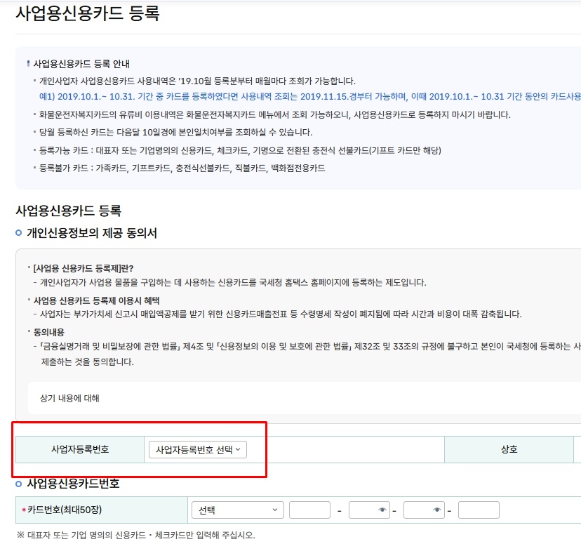 카드 명의 반드시 사업자 명의 (공동사업자는 각각 등록)