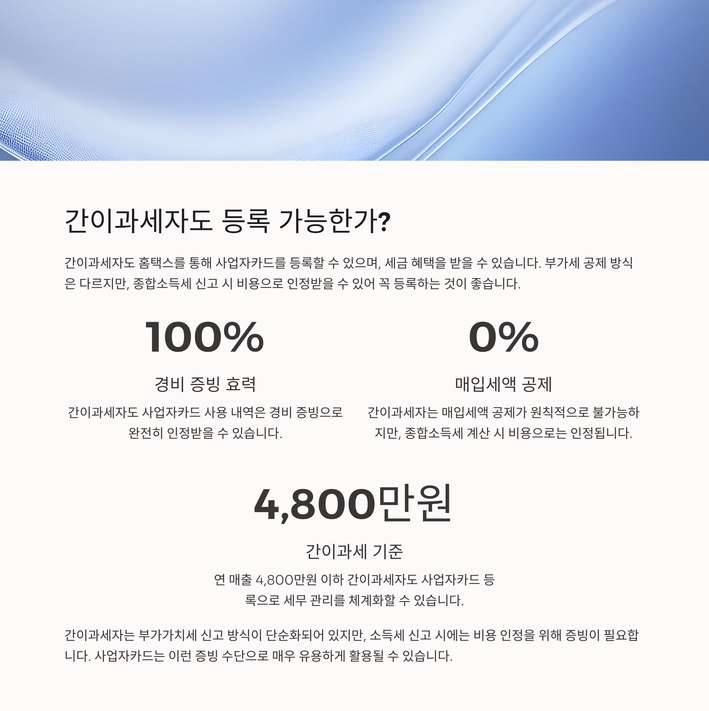 간이과세자도 홈택스를 통해 사업자카드 등록이 가능하며,