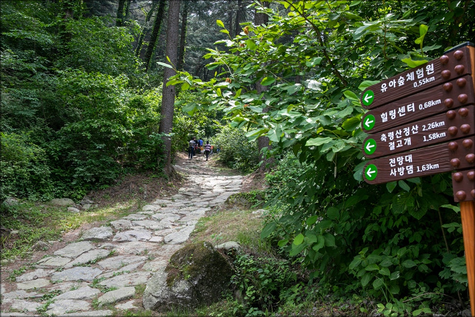 - 임도순환코스 (6.6km, 2시간 30분) : 숲 전체를 여유 있게 돌아보는 코스
