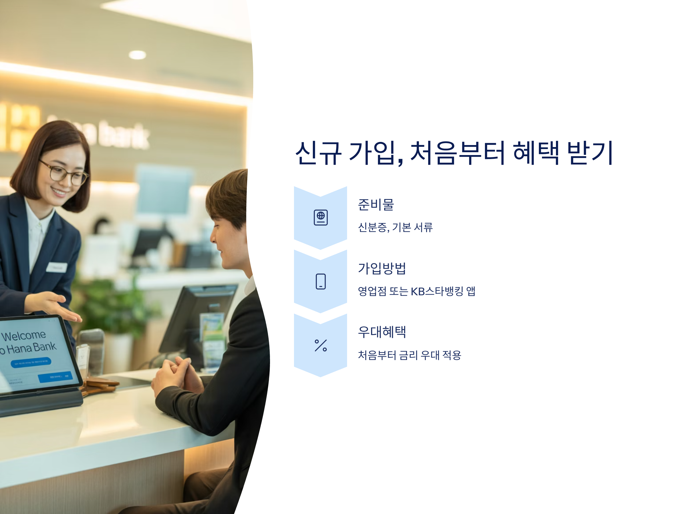 - 신규 가입자는 우대금리를 통해 장기 이점 확보