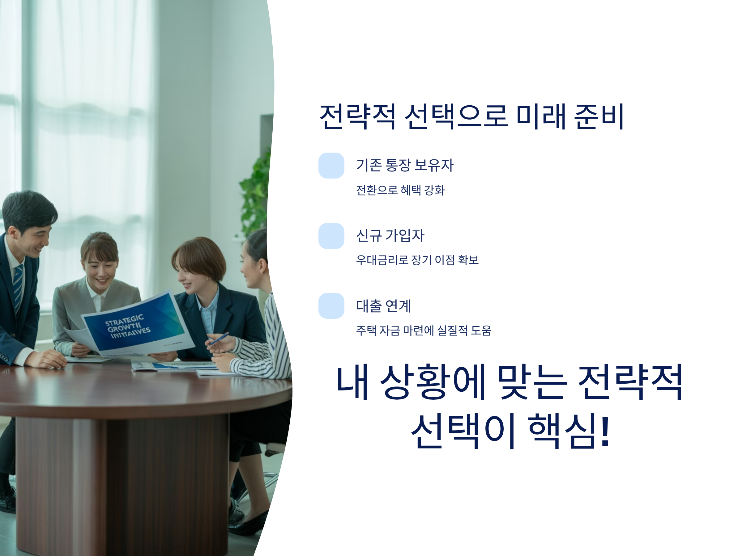 신규 가입자는 처음부터 금리 우대 조건을 받을 수 있어 장기적으로 유리합니다. 자동이체로 꾸준히 납입하면 추가 우대금리를 받을 수 있고, 일정 기간 유지 시 대출 혜택까지 연계됩니다.